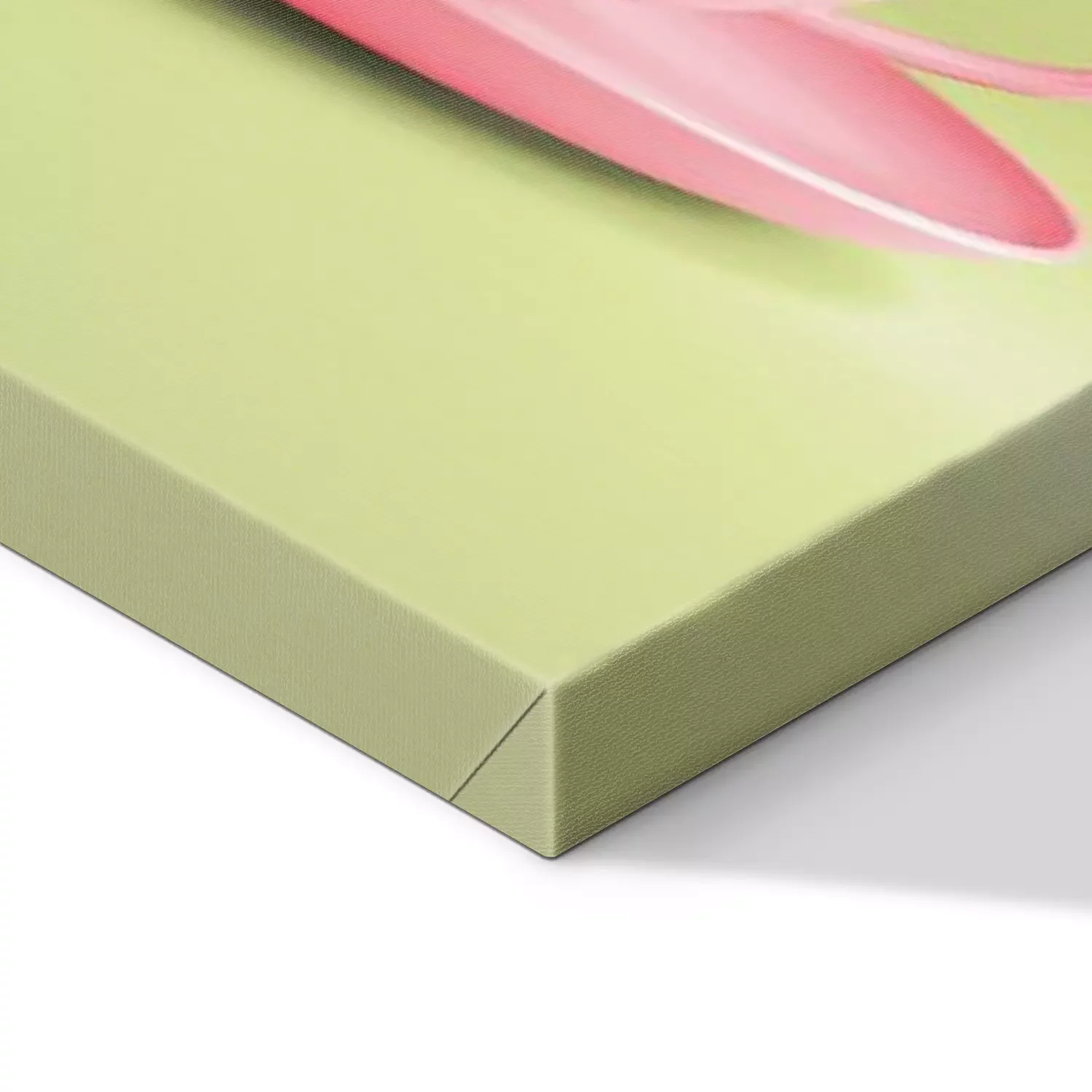 Une élégante aquarelle représentant une tasse rose sur fond vert.