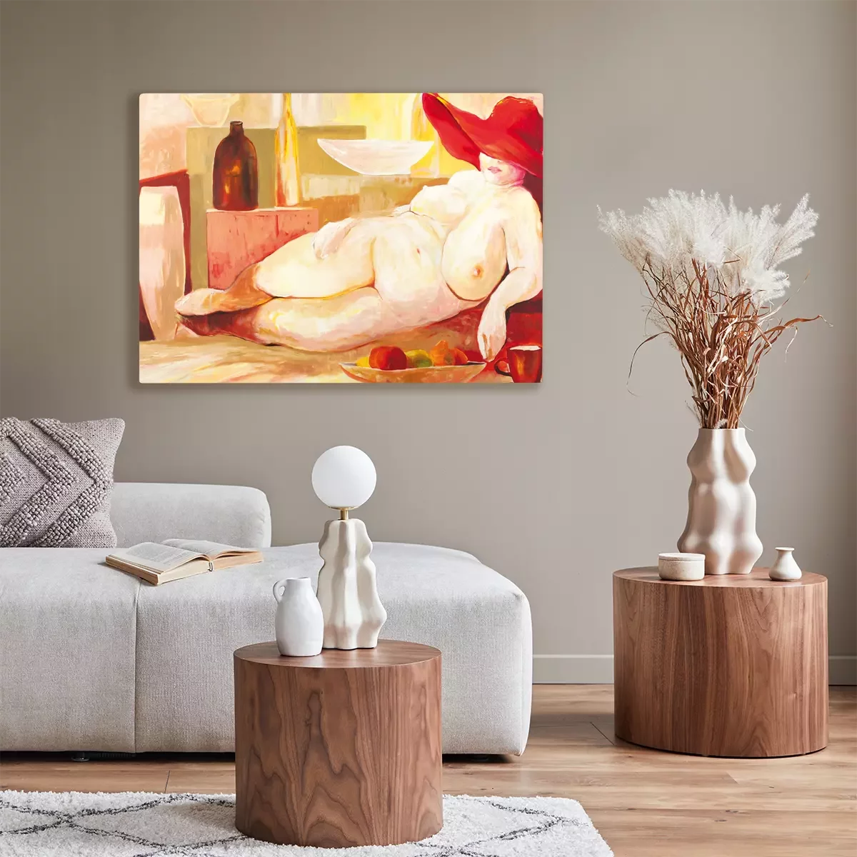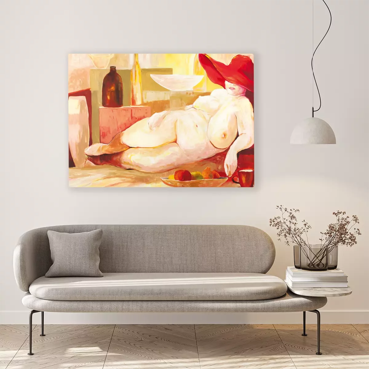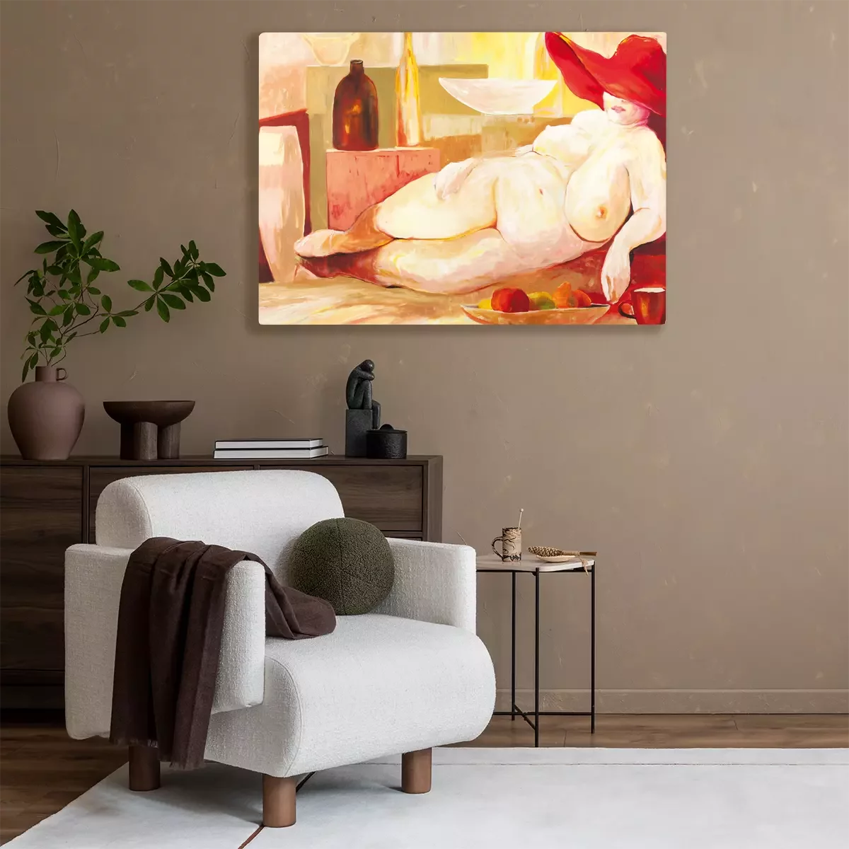 Une femme aux formes généreuses portant un chapeau rouge