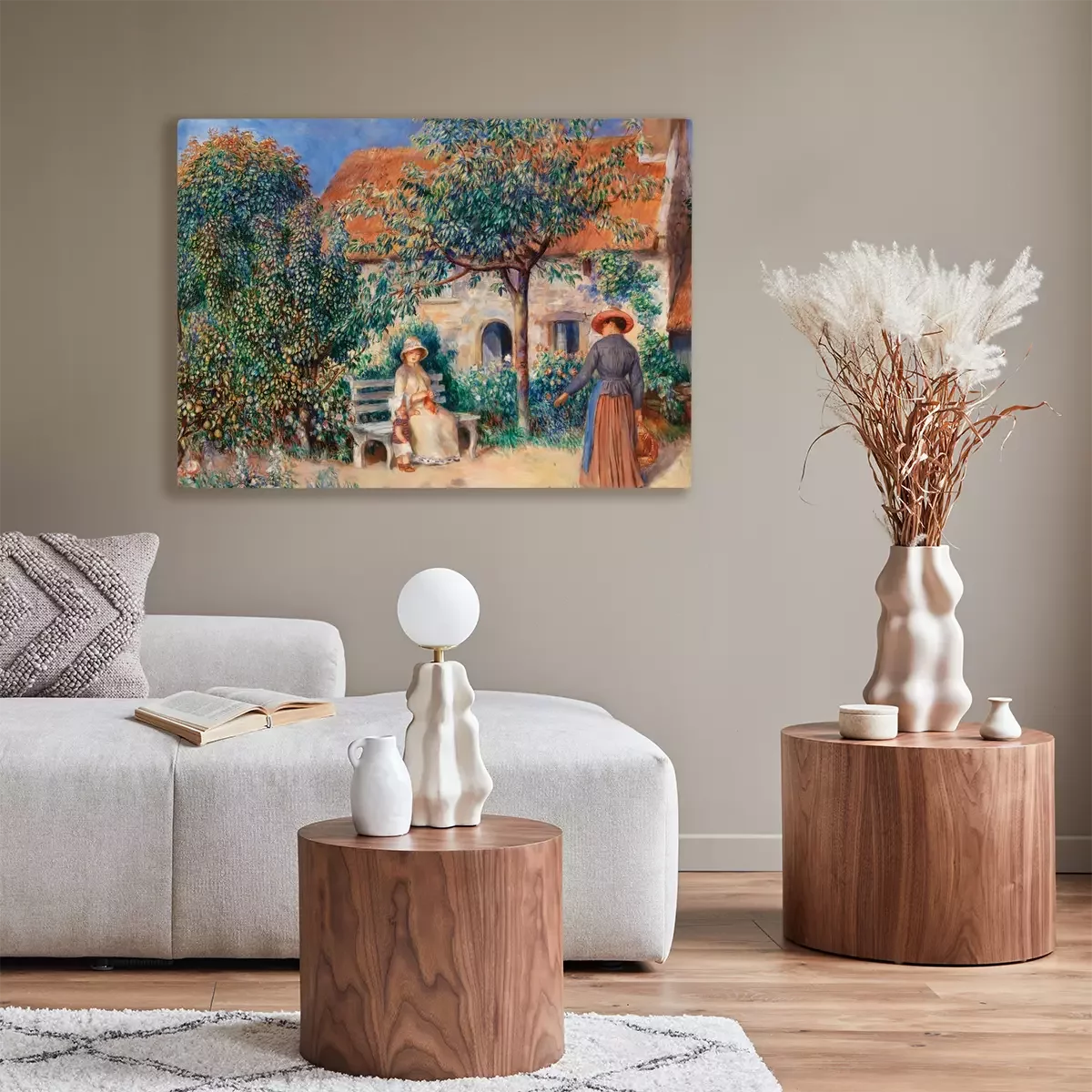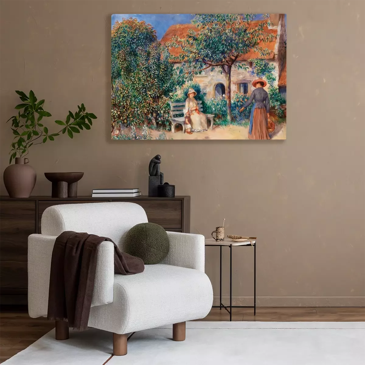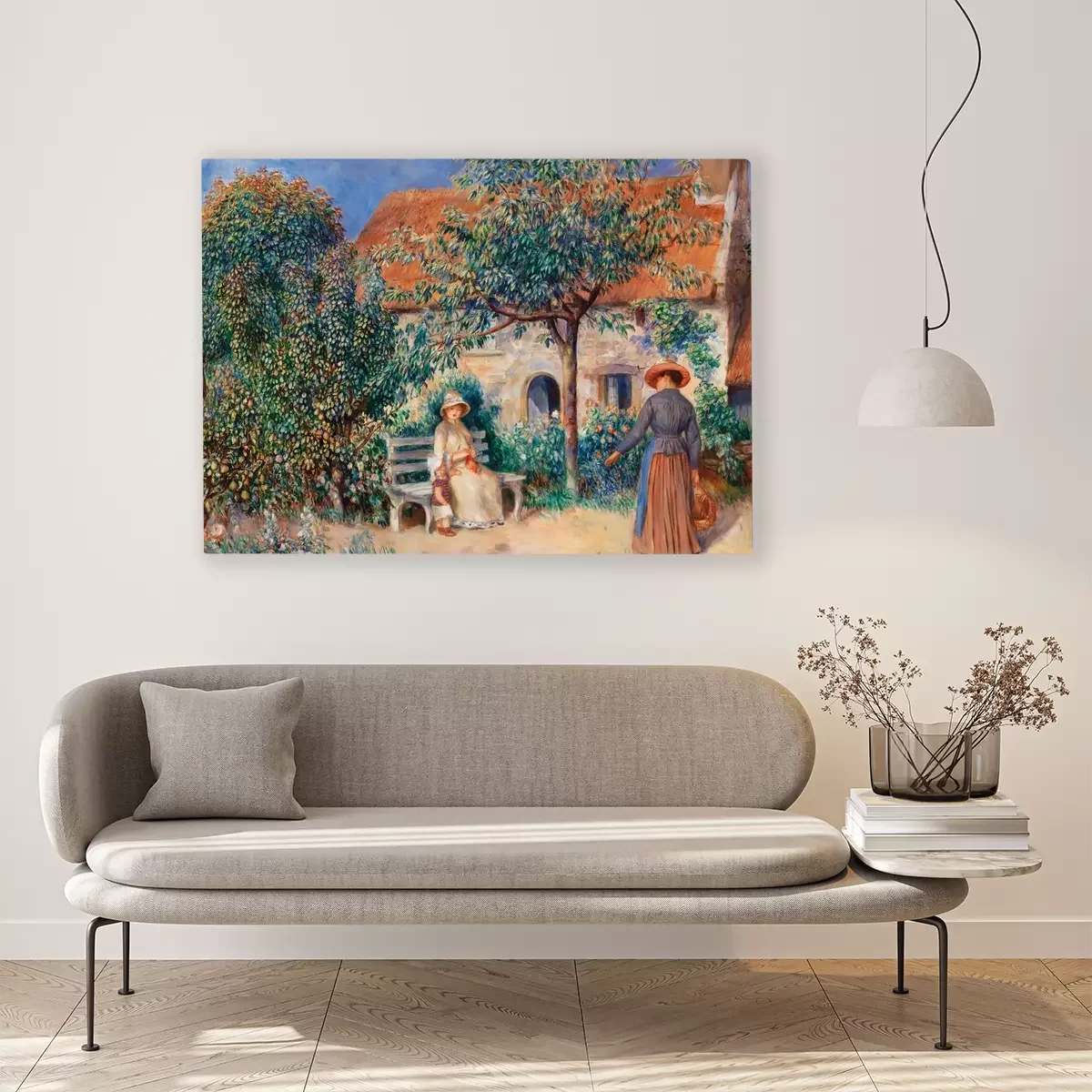 Une femme et un enfant dans un verger familial