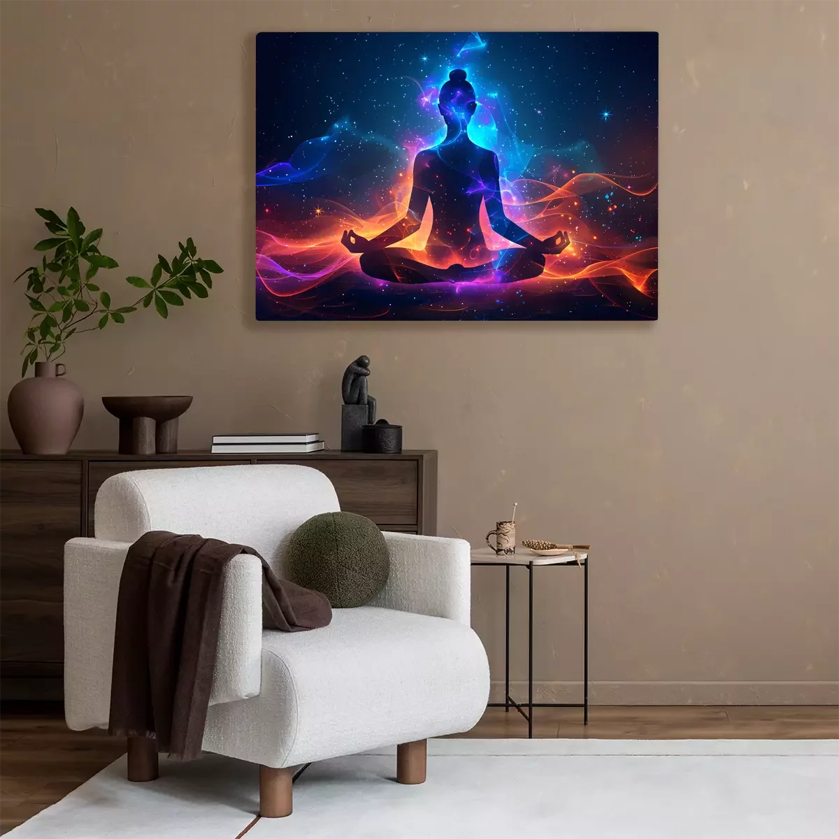 Une figure en méditation imprégnée d'énergie cosmique