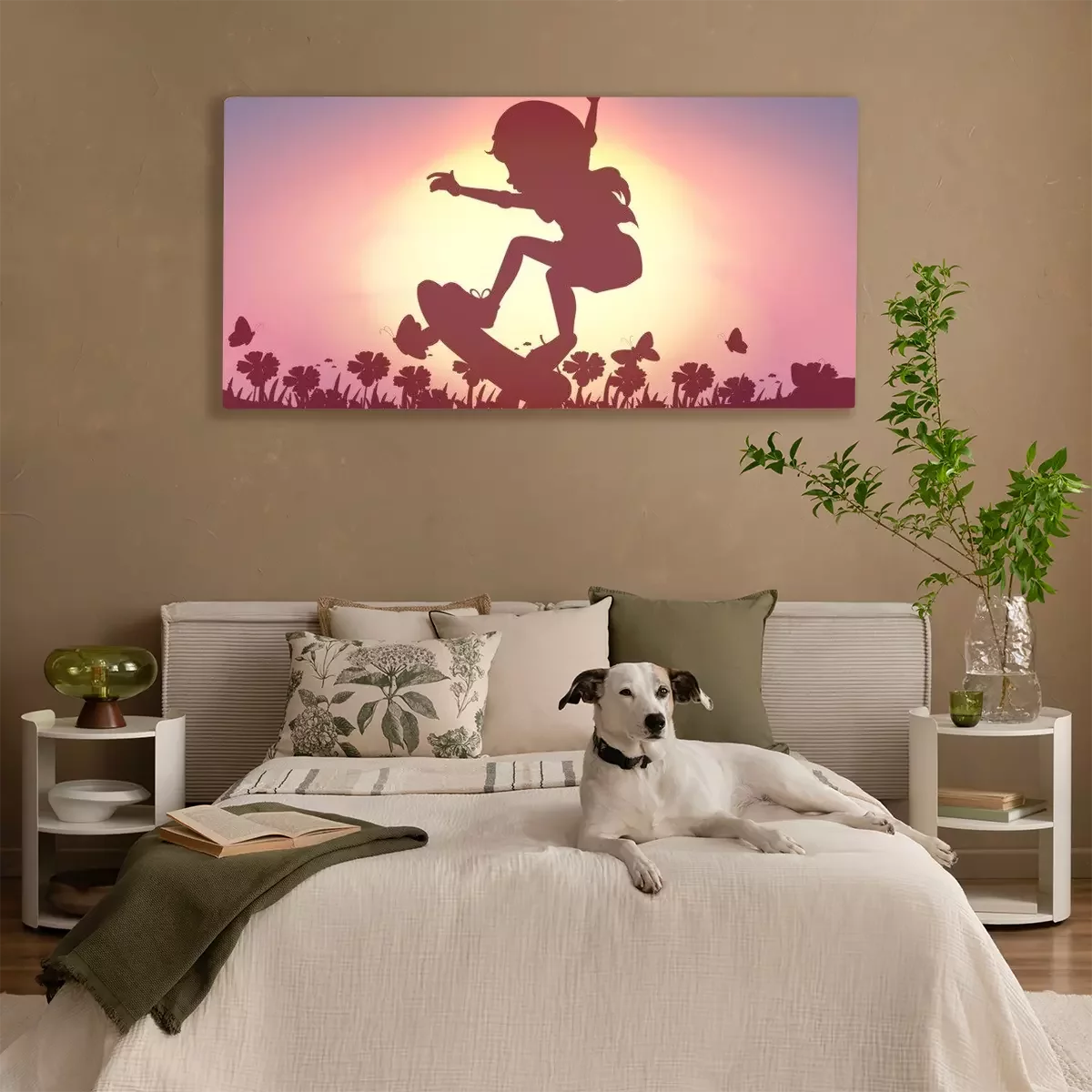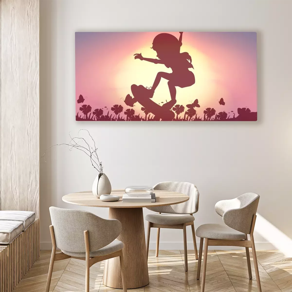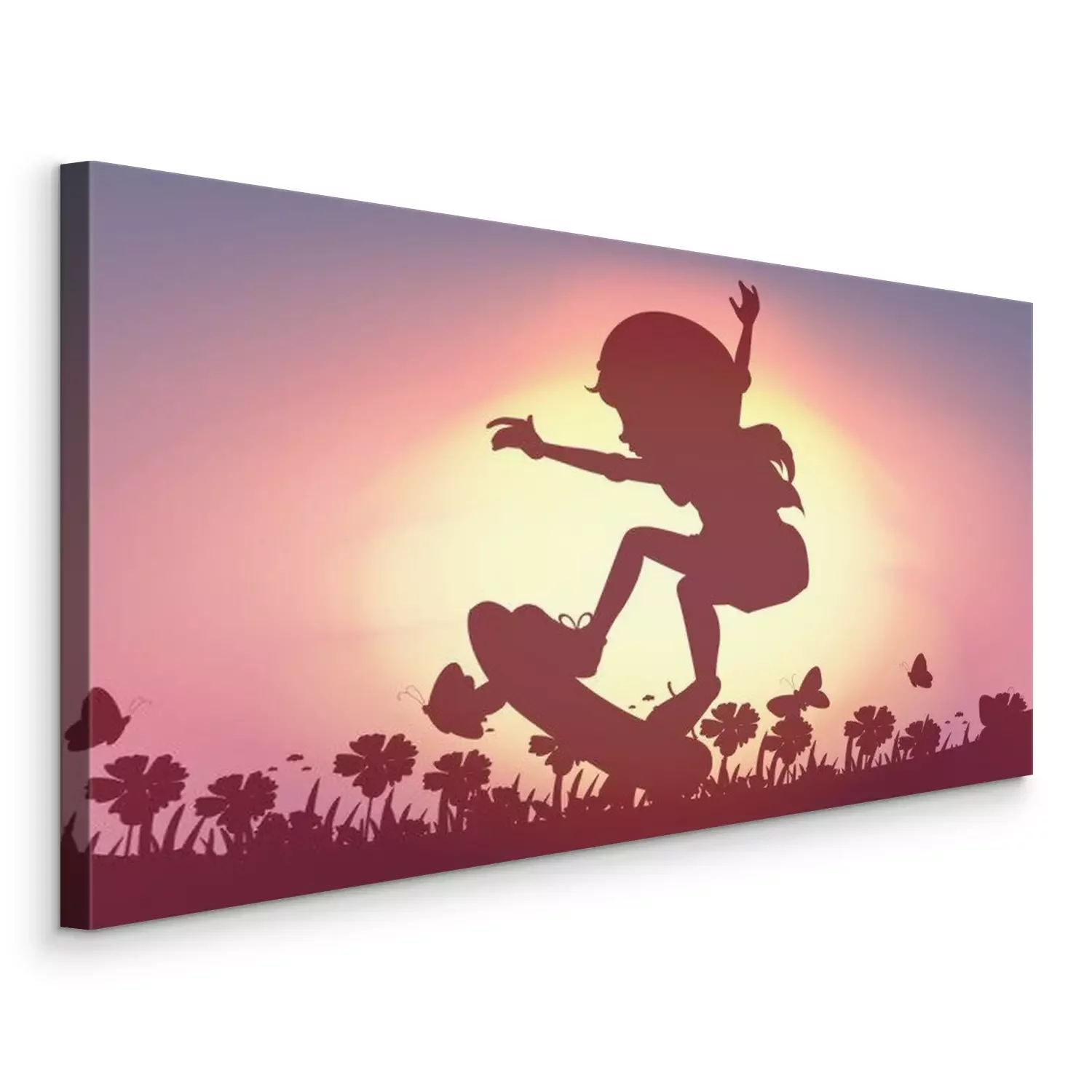 Tableau  Une fille sur un skateboard au milieu de fleurs des champs