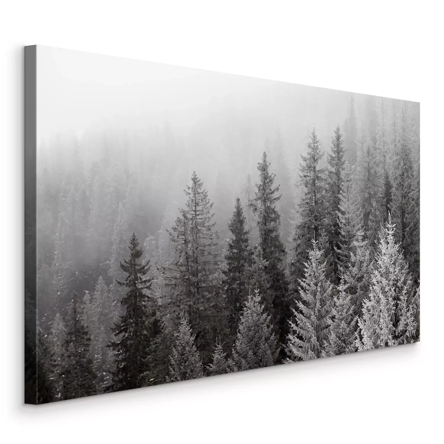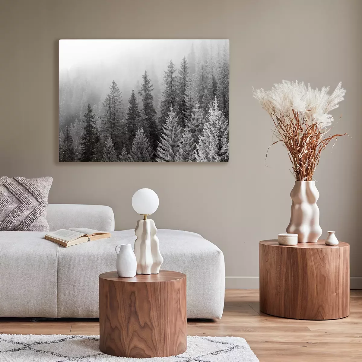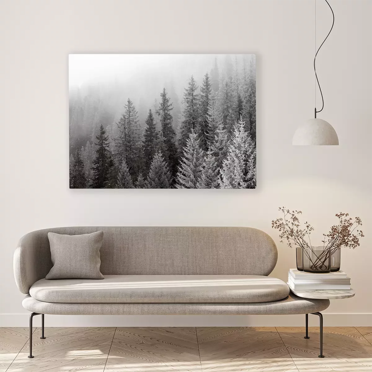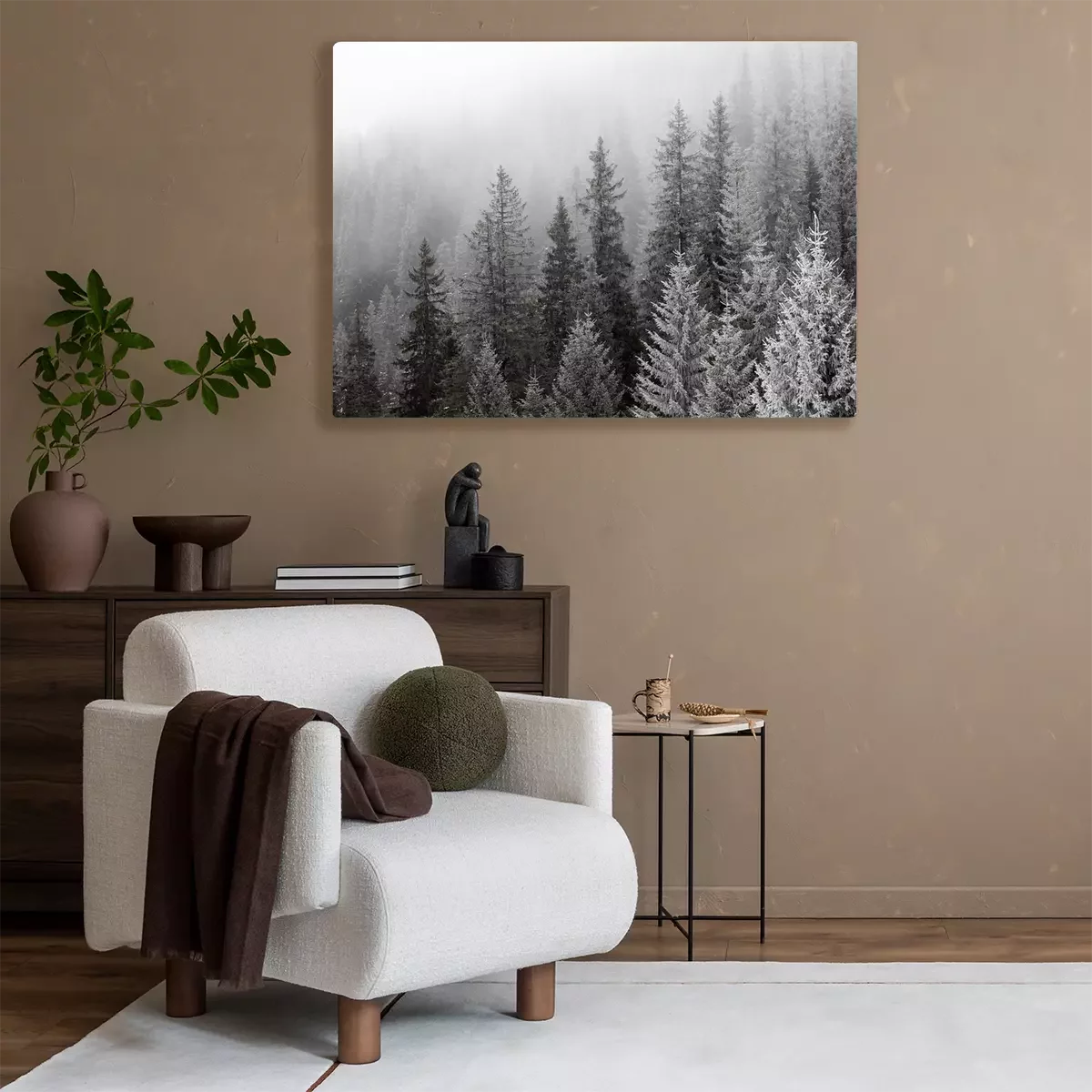 Tableau  Une forêt hivernale brumeuse avec des épicéas enneigés