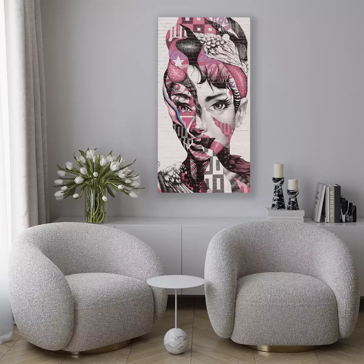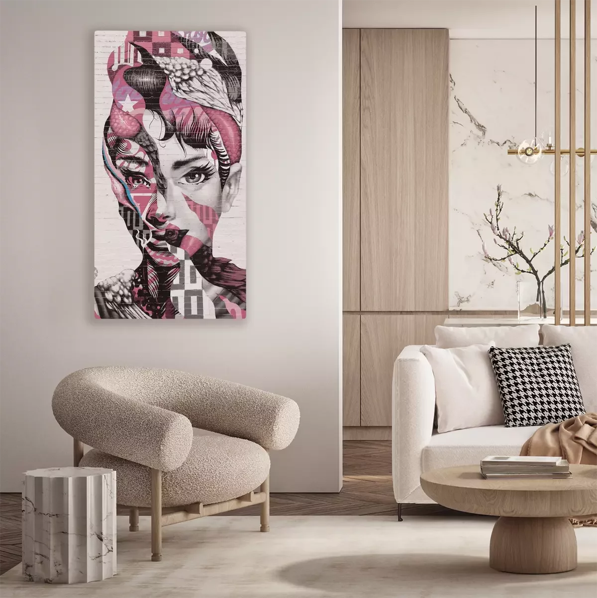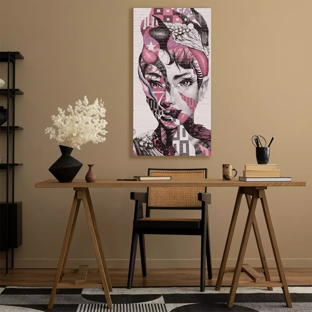 Tableau : Une fresque abstraite et dynamique représentant le portrait d'une femme