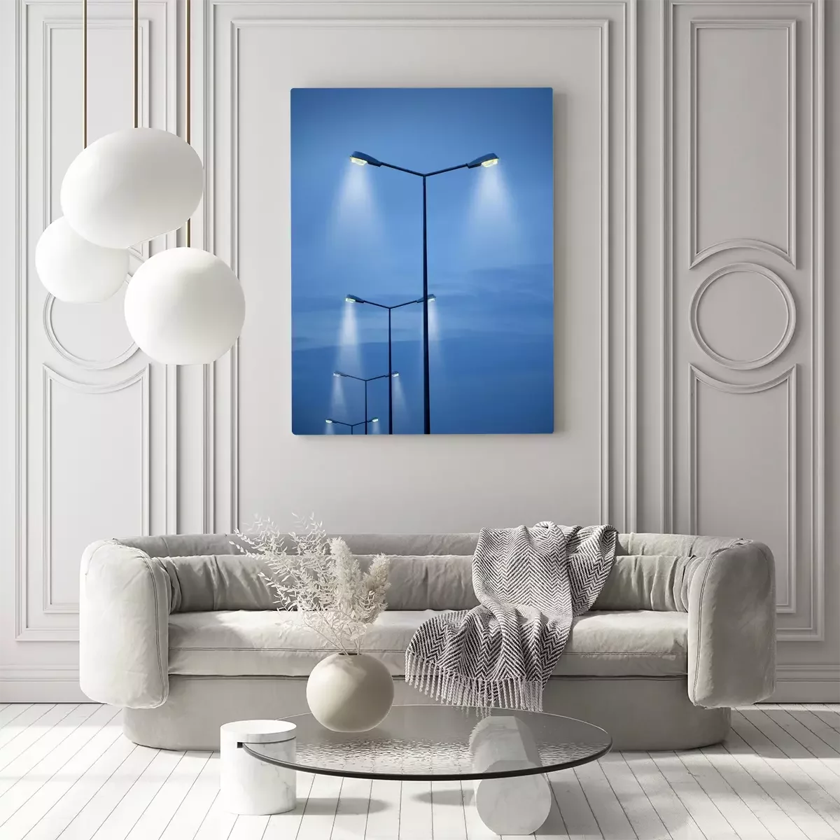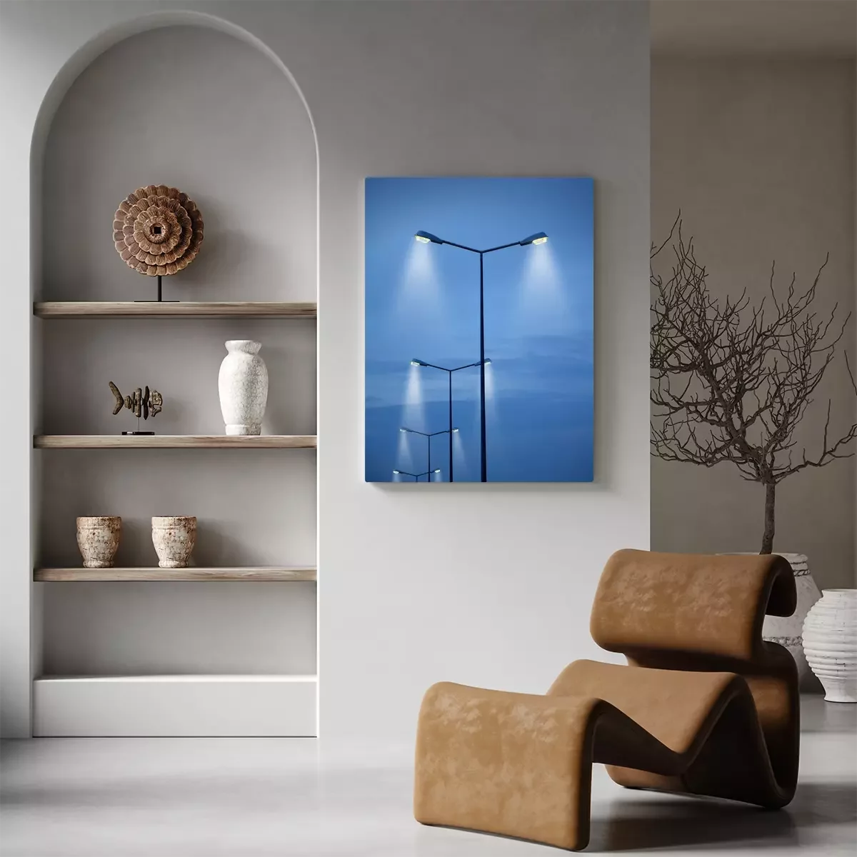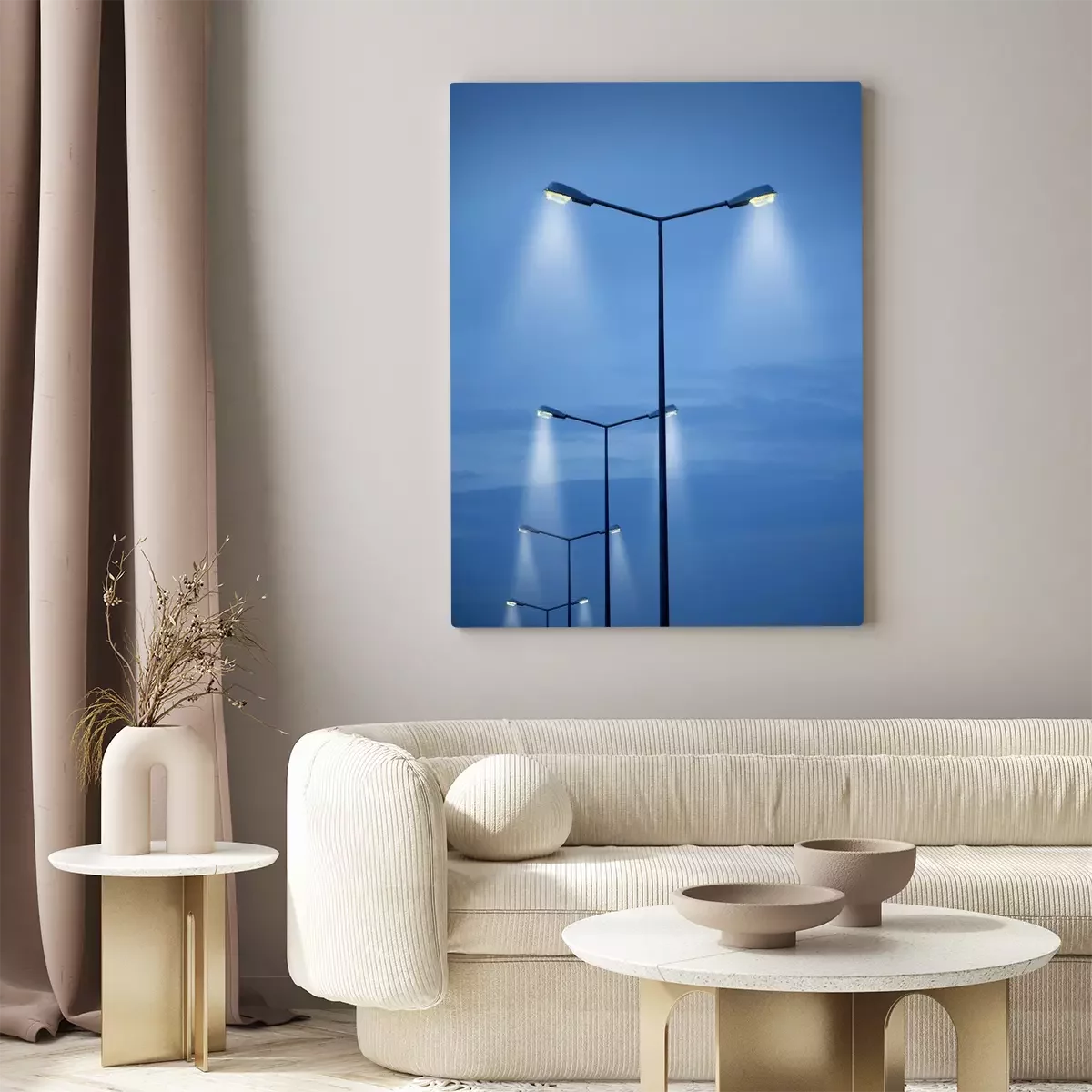 Tableau : une image de l'éclairage public sur le ciel bleu