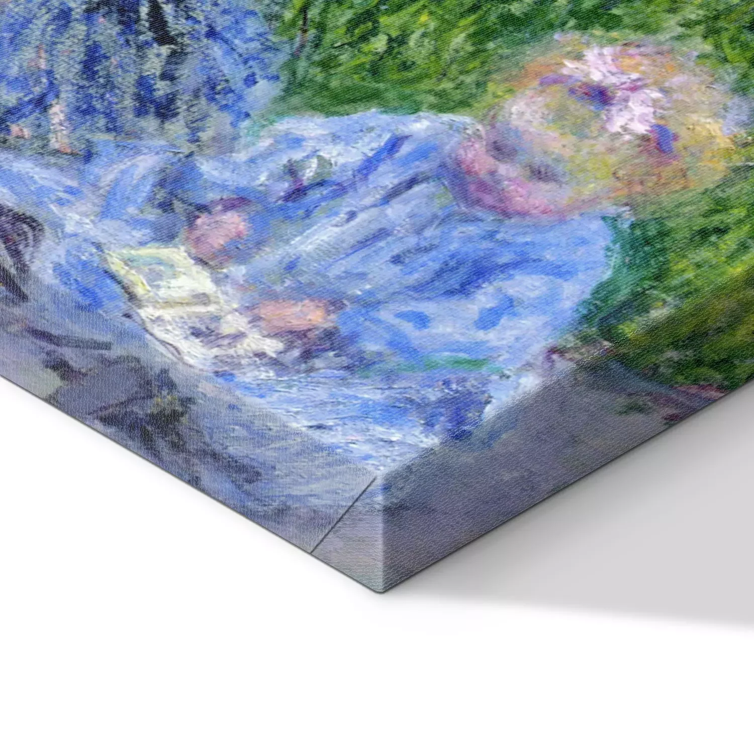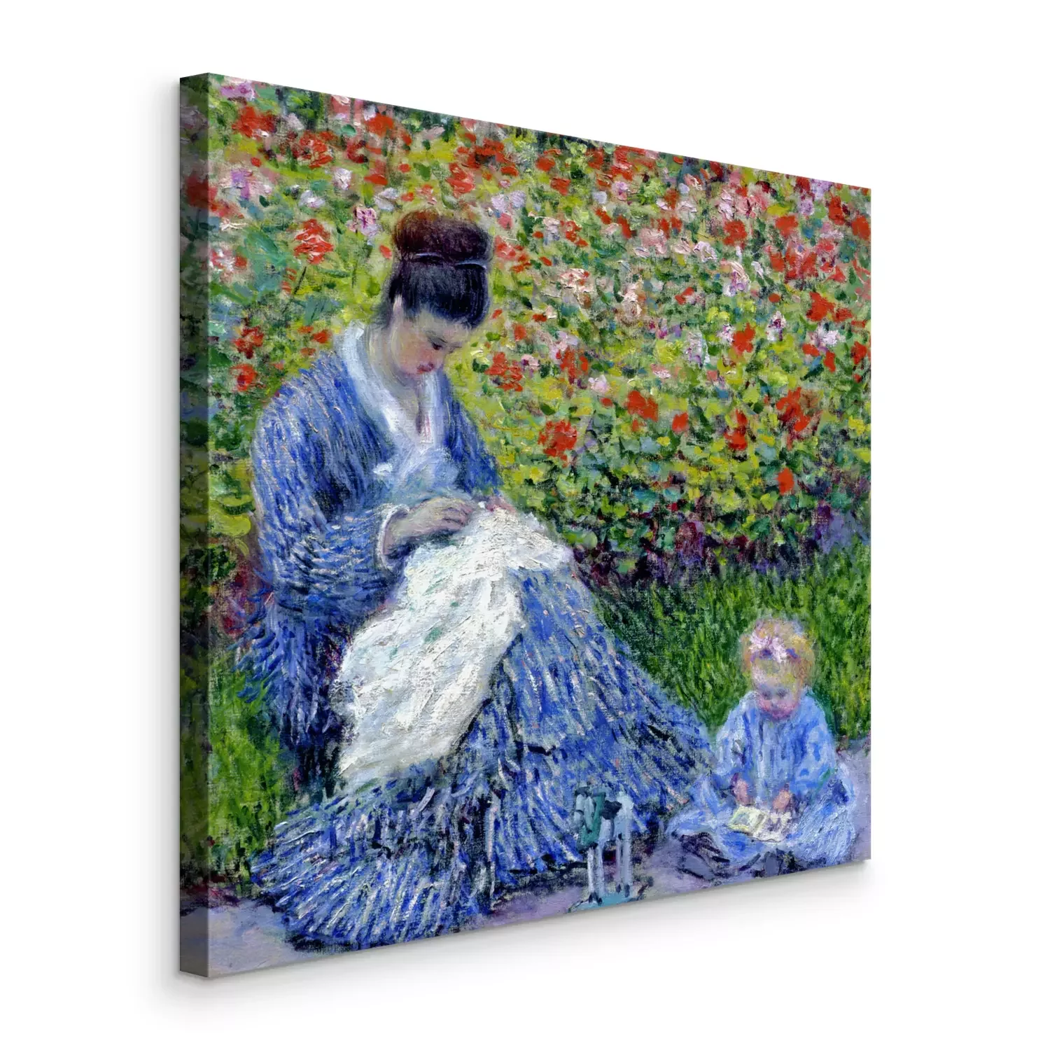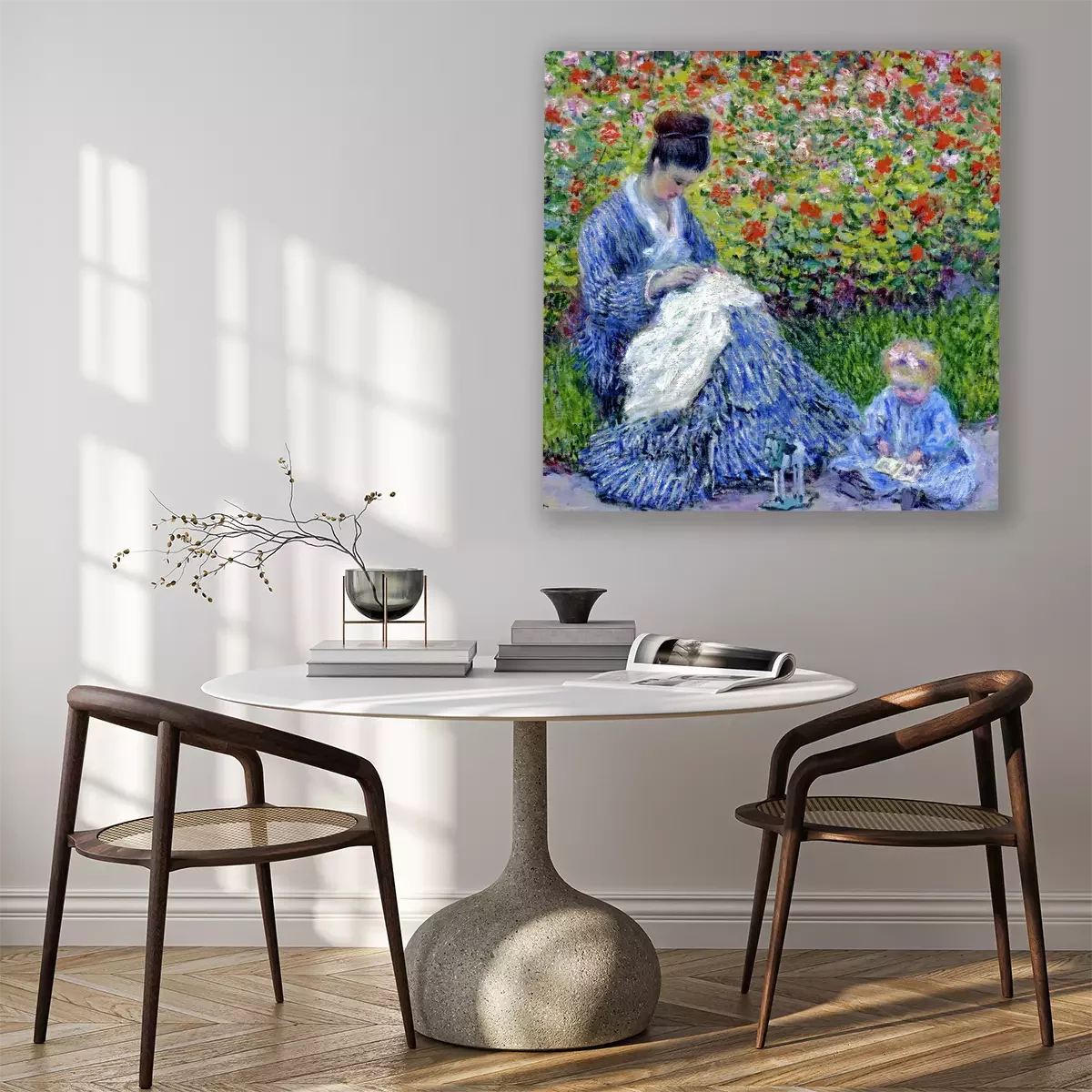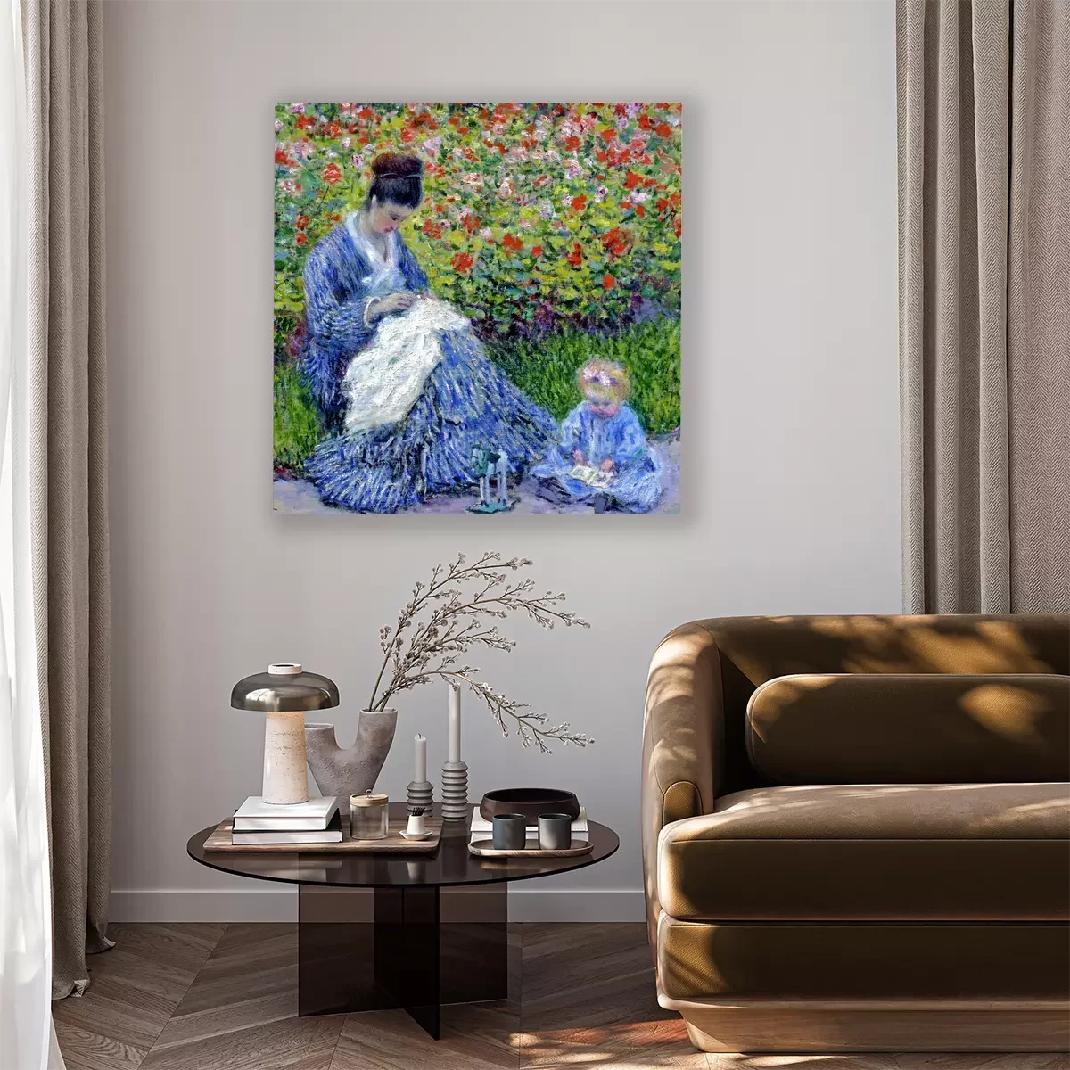 Tableau : Une mère et son enfant entourés d'un jardin fleuri