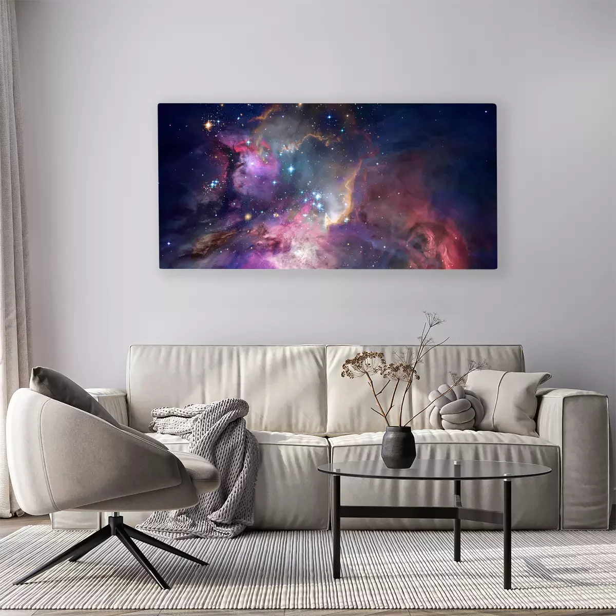Tableau : Une nébuleuse colorée avec des étoiles dans l'espace