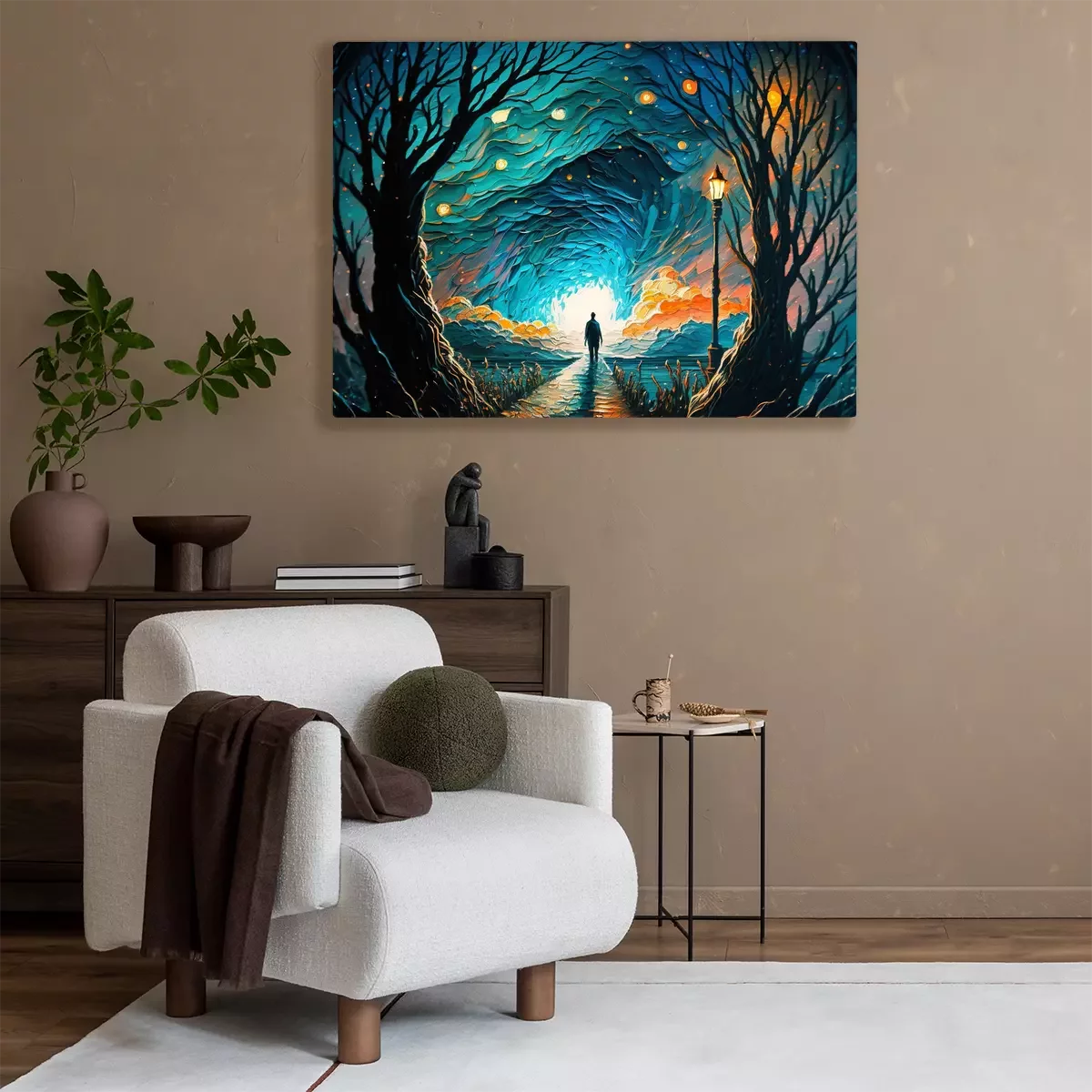 Une promenade dans un paysage abstrait sous un ciel étoilé