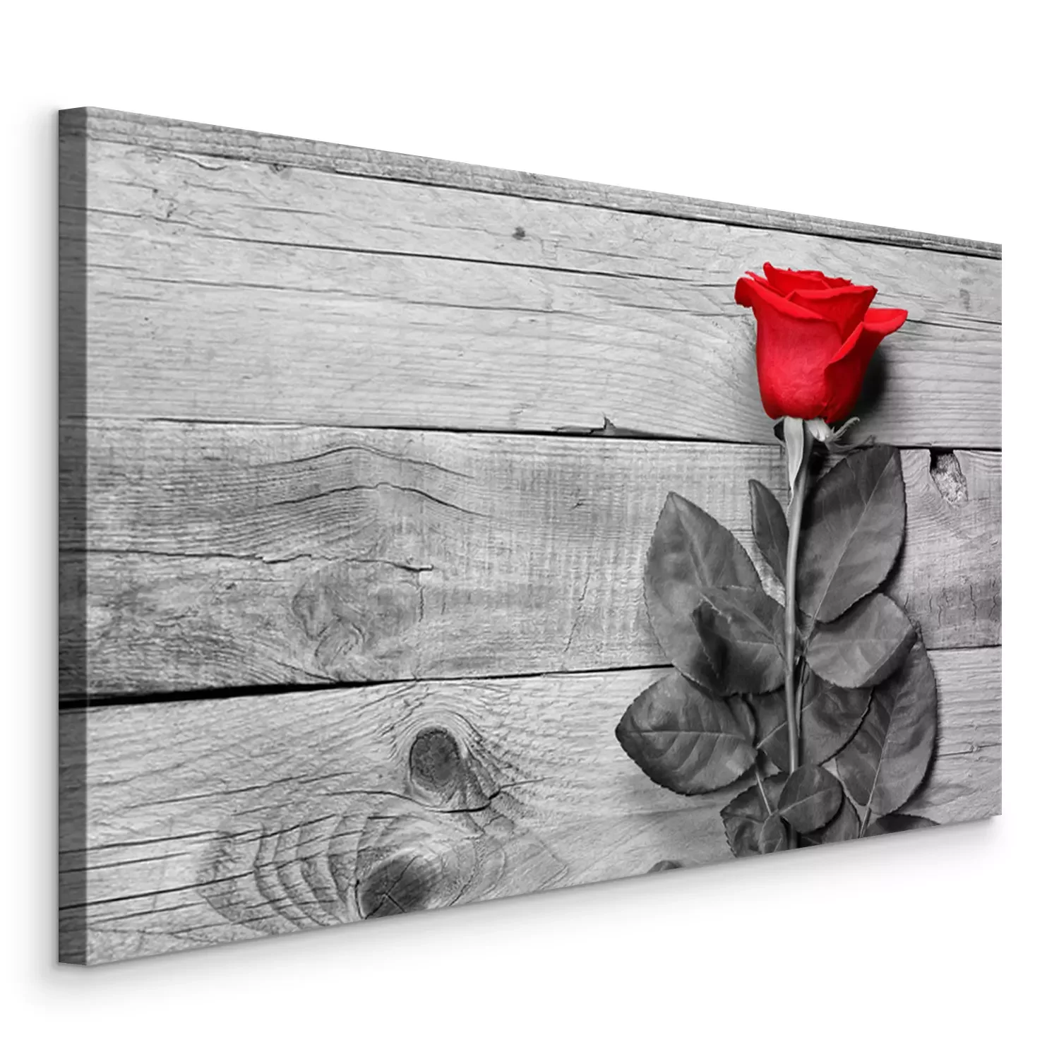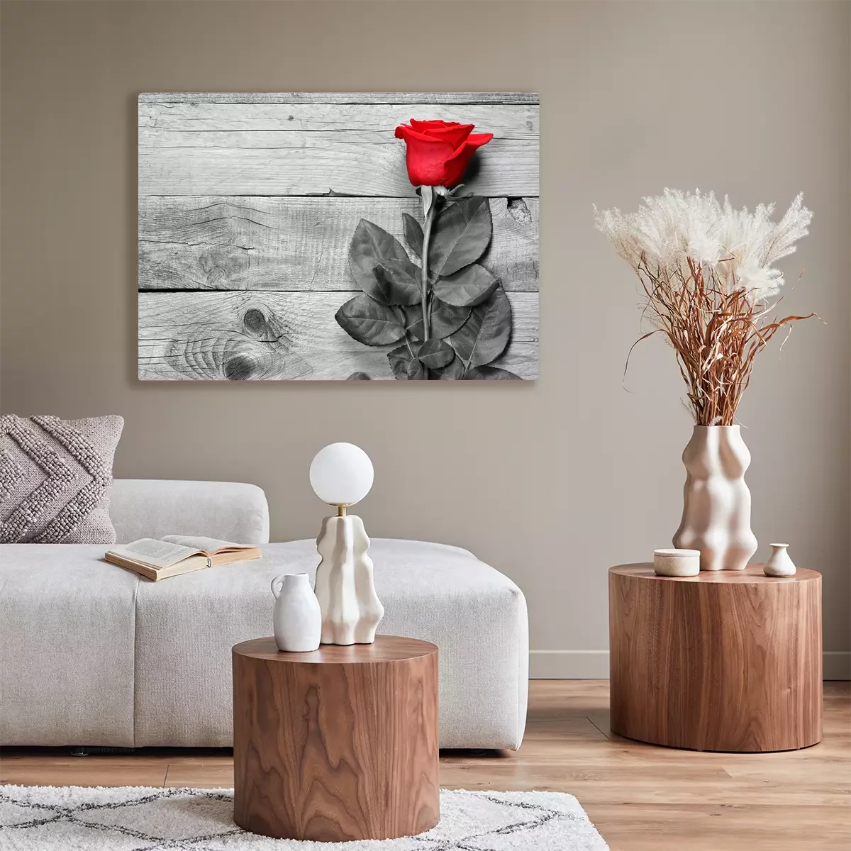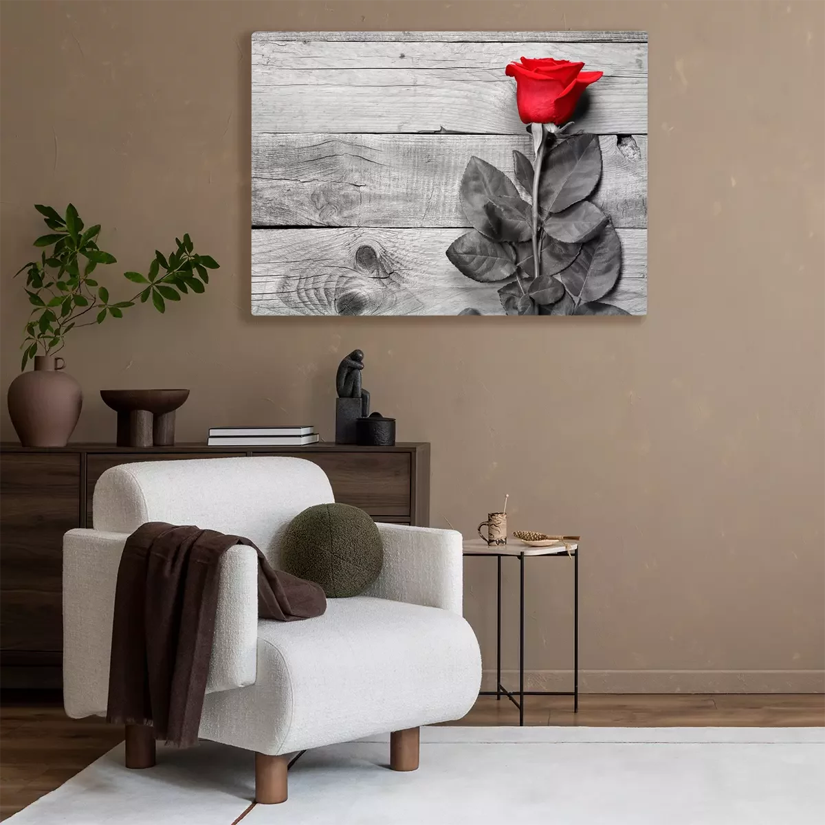 Tableau  Une rose rouge sur fond de planches de bois brut