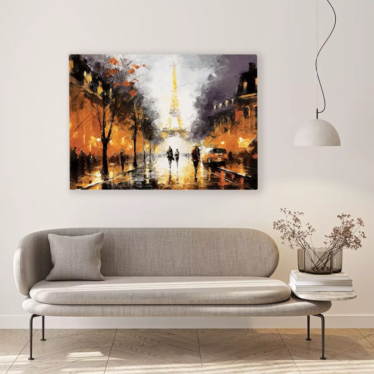 Une rue parisienne illuminée la nuit avec la tour eiffel