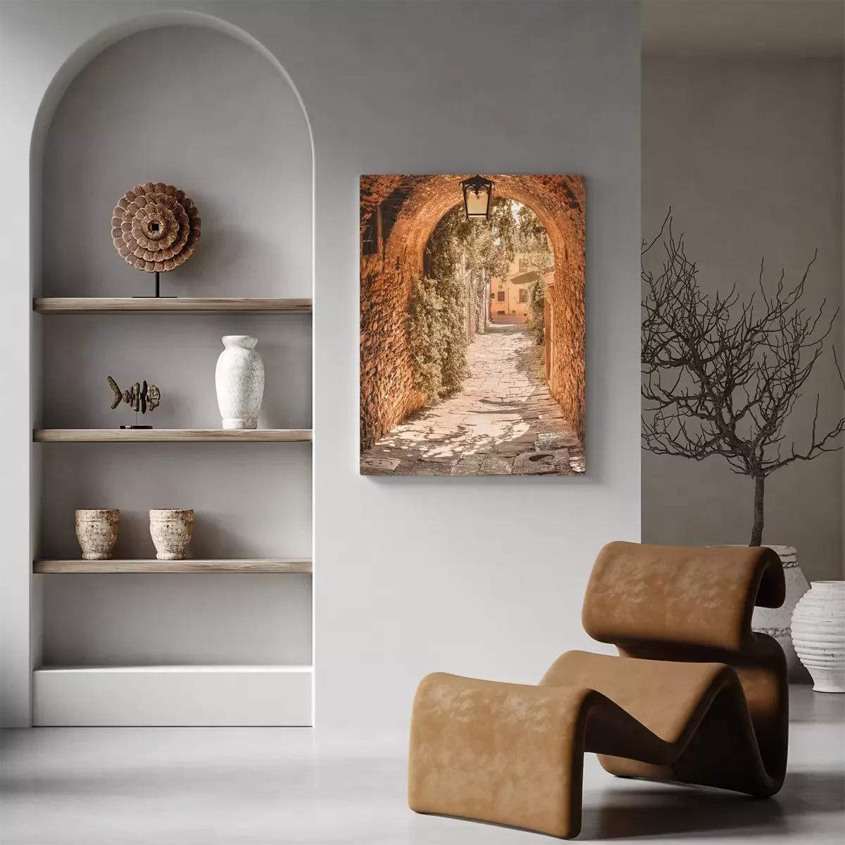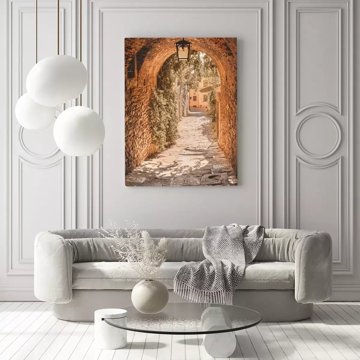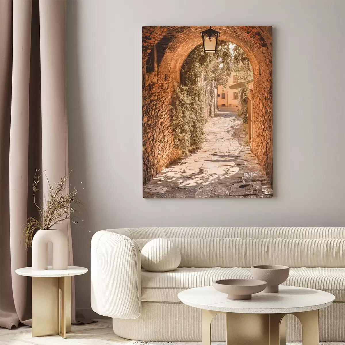 Une rue pavée pittoresque bordée de vignes