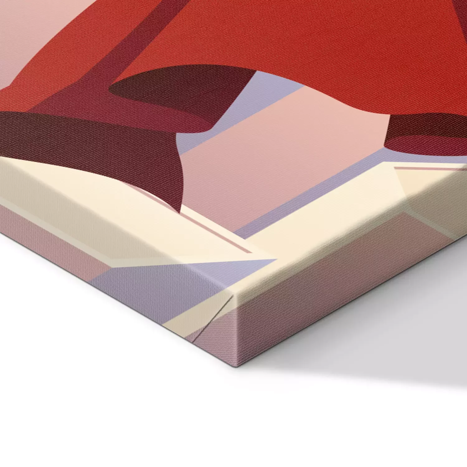 Une silhouette vêtue d'une cape rouge se détache sur le fond de la ville.