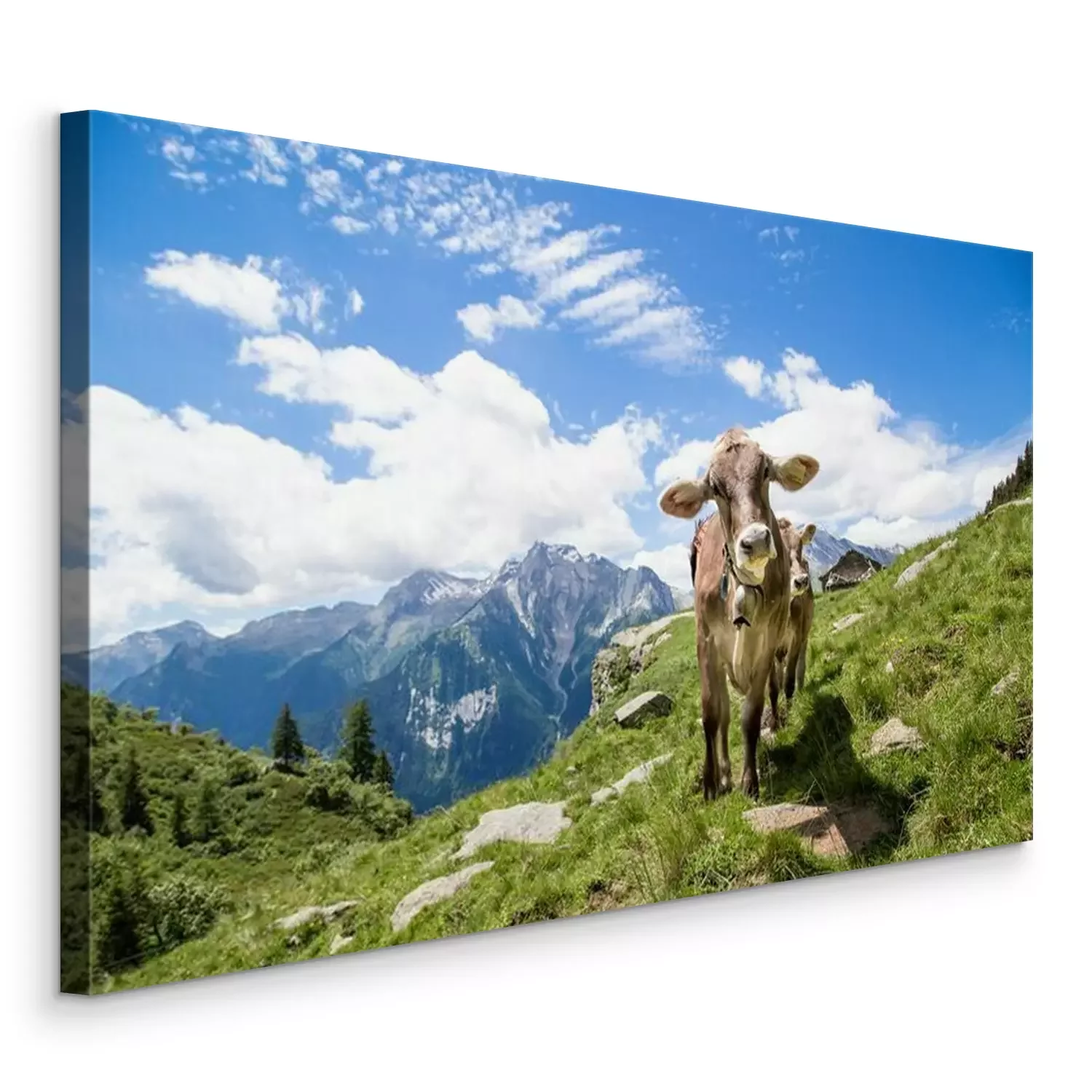 Tableau : Vache alpine avec un paysage montagneux en arrière-plan