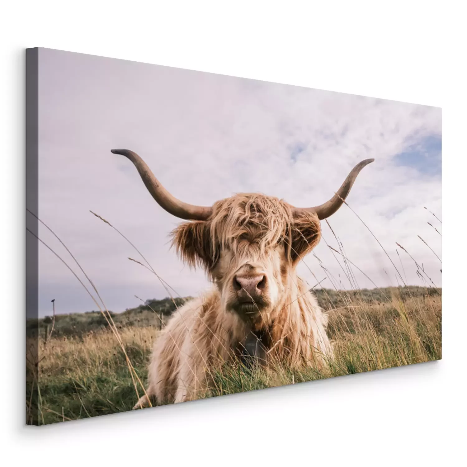Tableau  Vache écossaise des hautes terres couchée dans l'herbe
