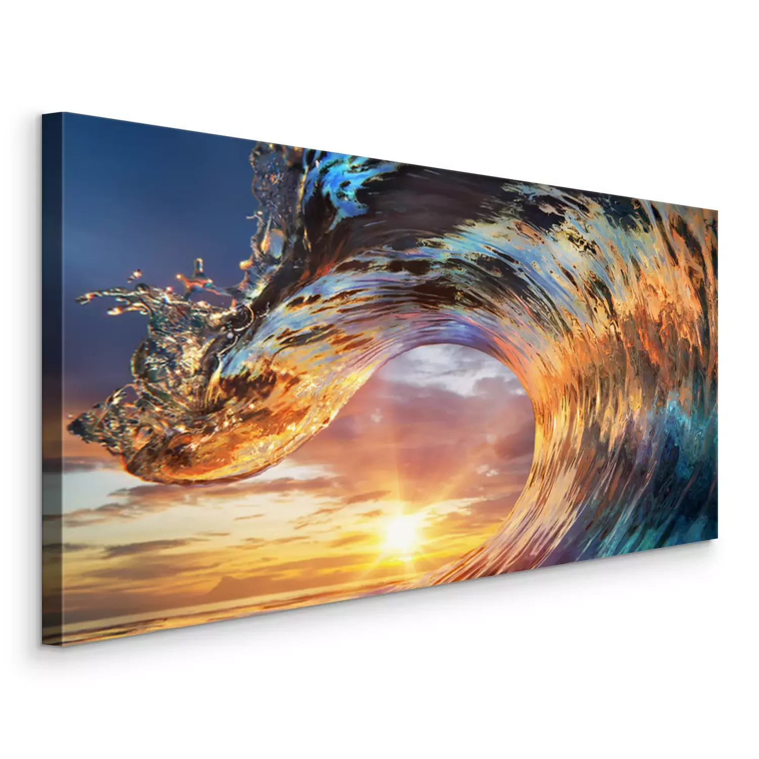 Tableau  Vague océanique colorée. Eau de mer en forme de crête. Sunset light et de beaux nuages ​​sur le fond