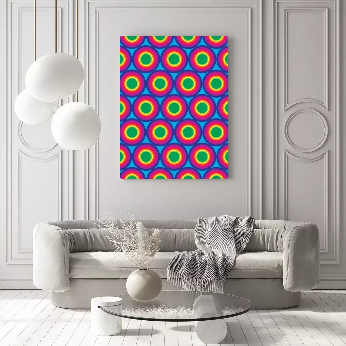 Tableau  Vecteur moderne, seamless, coloré, géométrie, cercles, modèle, couleur, Arc-en-ciel, résumé, géométrique, fond, trendy, multicolore,