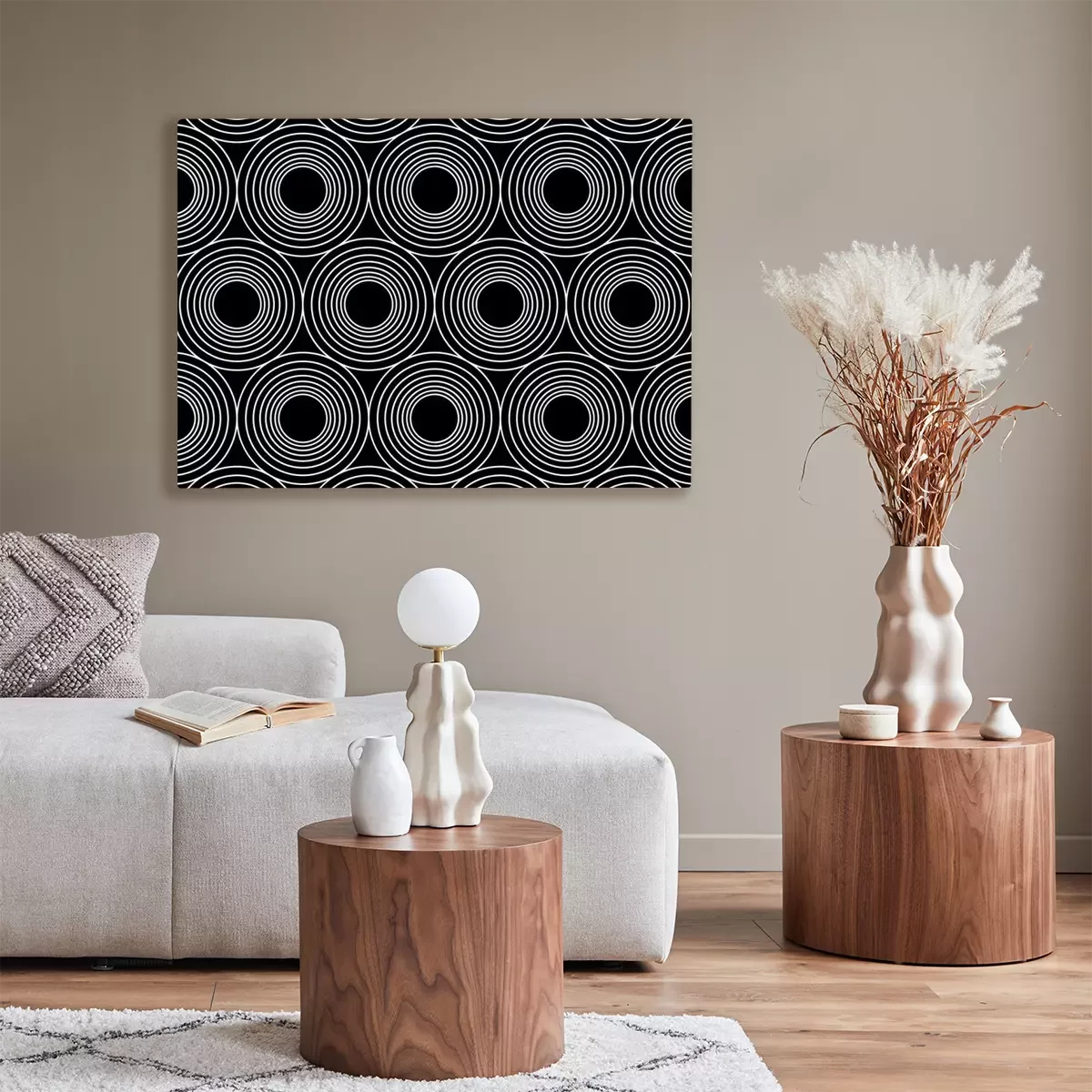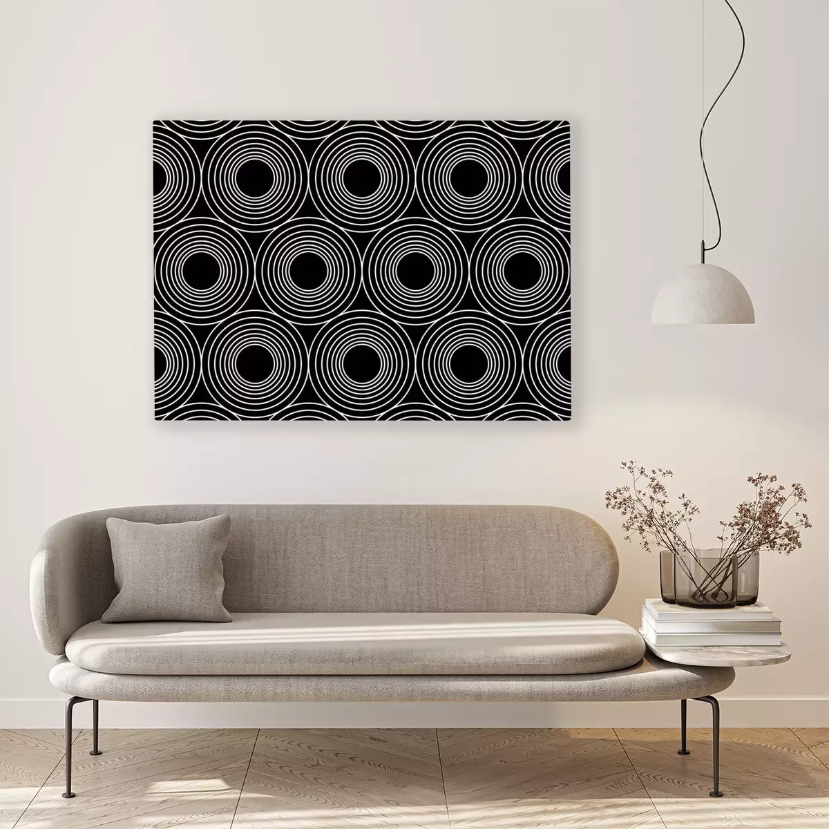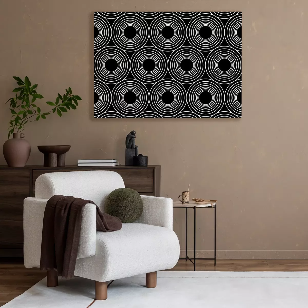 Tableau  Vecteur moderne, seamless, géométrie, modèle, cercles, concentrique, noir, blanc, résumé, géométrique, fond, tendance, impression, monochrome, retro, texture