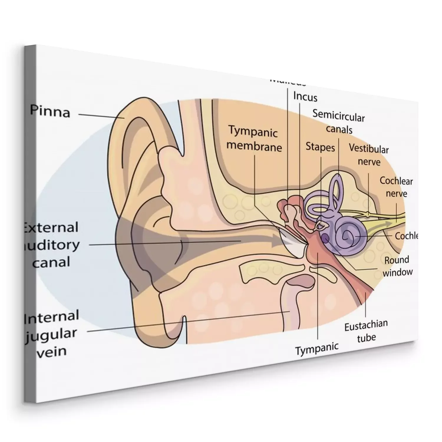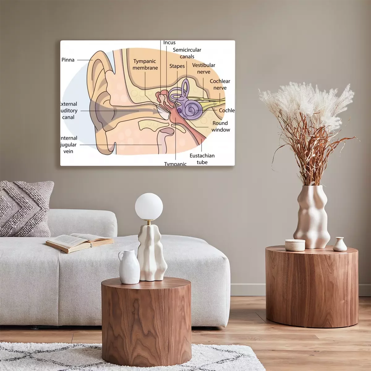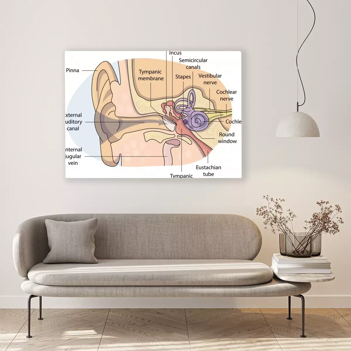 Tableau  Vector illustration of a schematically painting of an ear. Detailed ear anatomy diagram