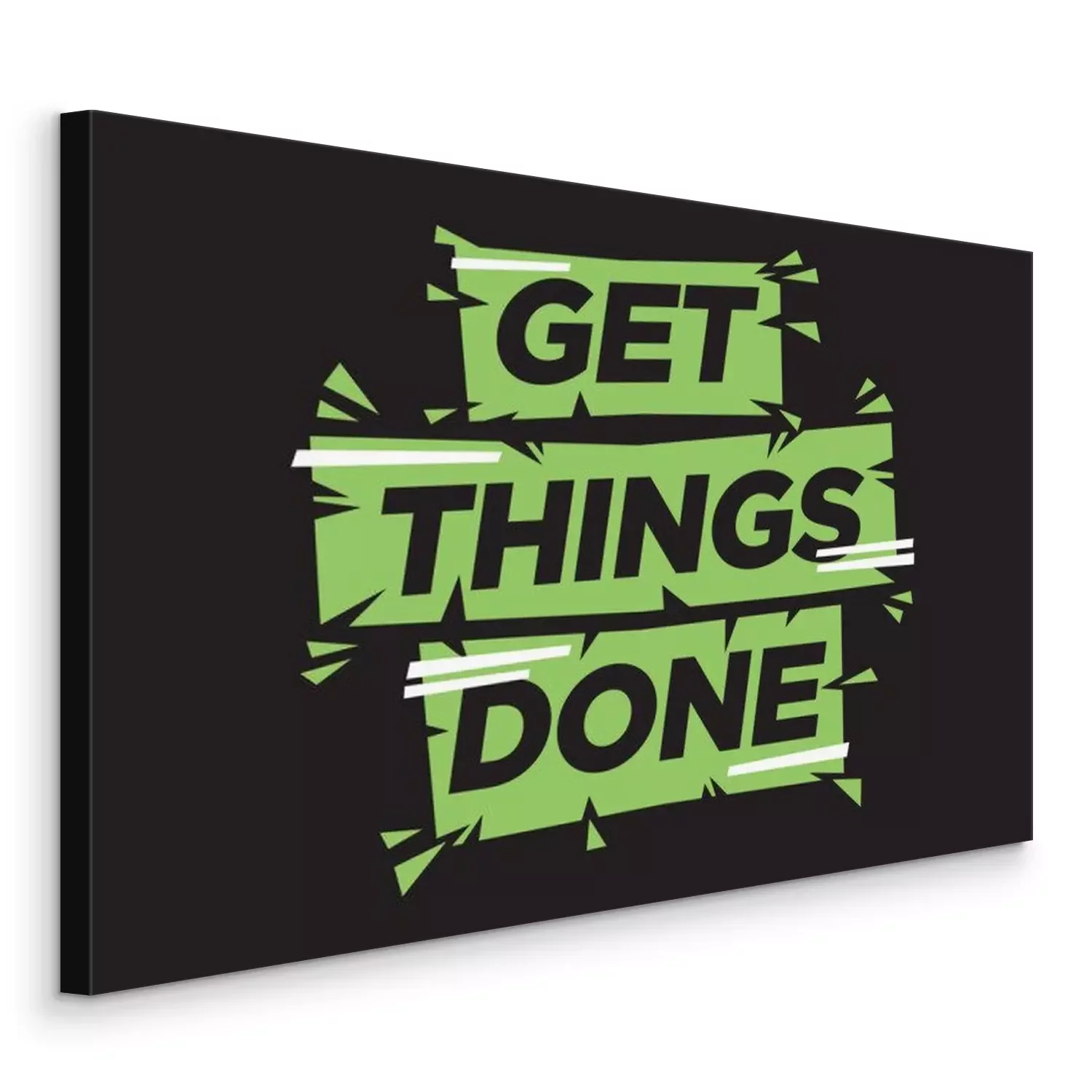 Tableau : Vector isolated illustration of a typography phase get things done against a black background. Motivational slogan for empowered or self-help people to improve productivity.