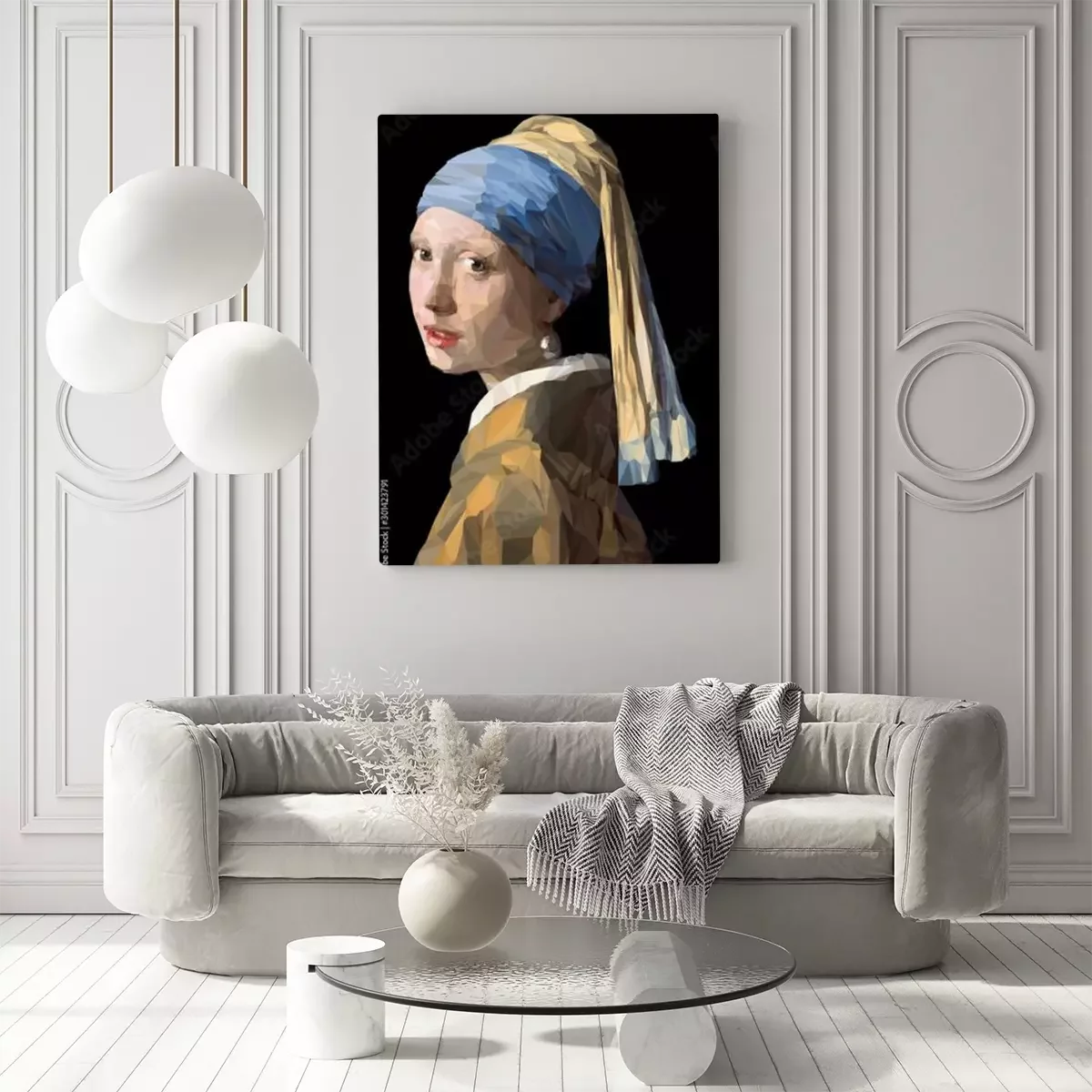 Tableau  Vector LowPoly Reproduction of Girl with a Pearl Earring
