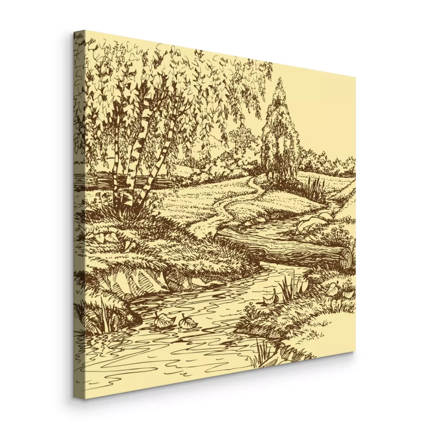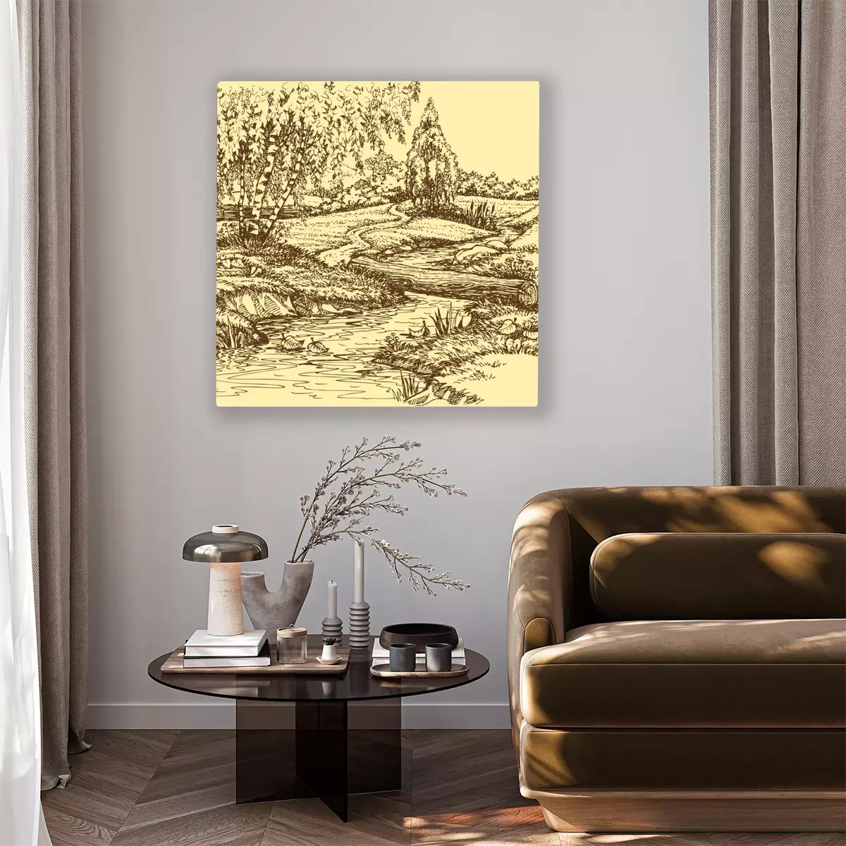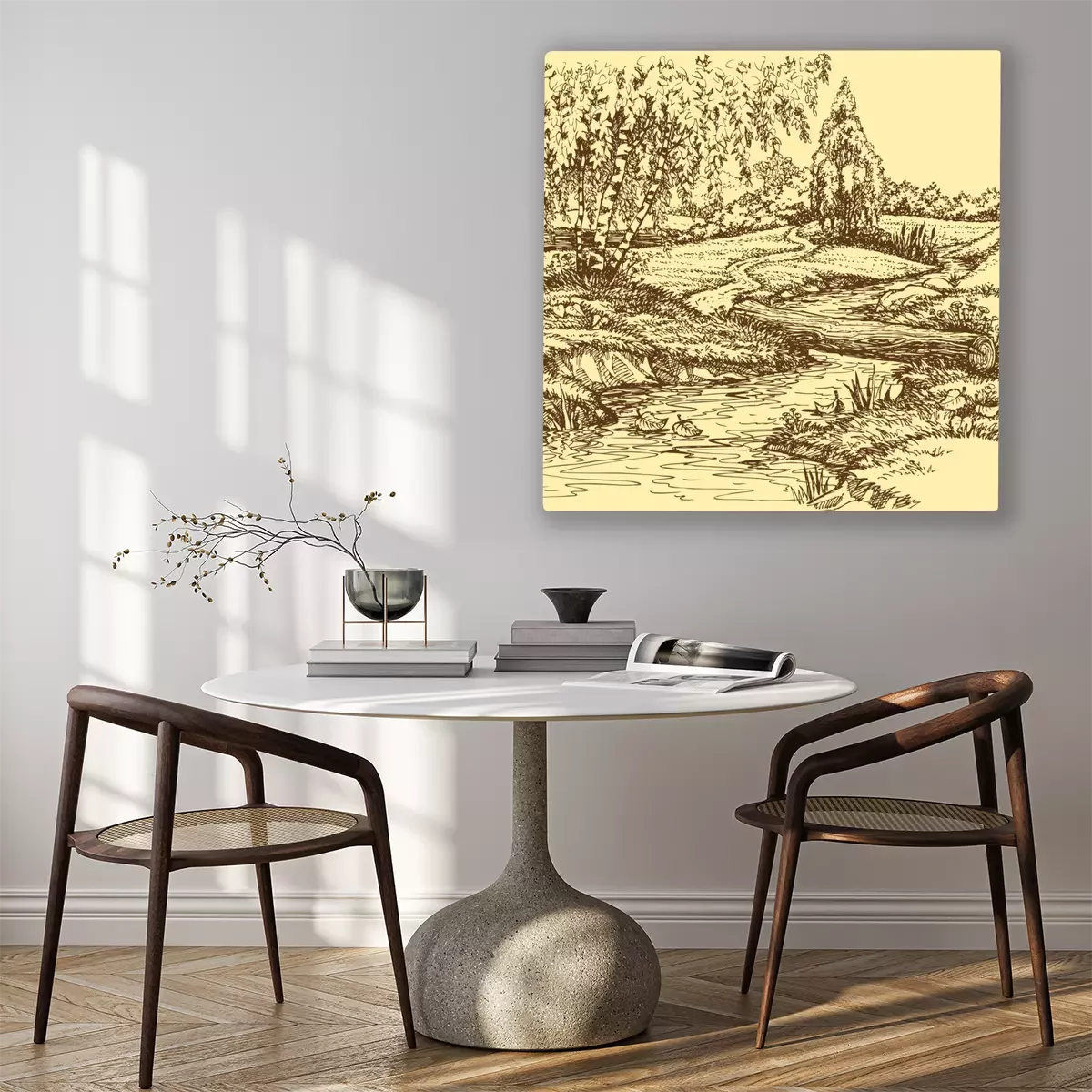 Tableau  Vector paysage. Bouleaux près de piste sur le ruisseau