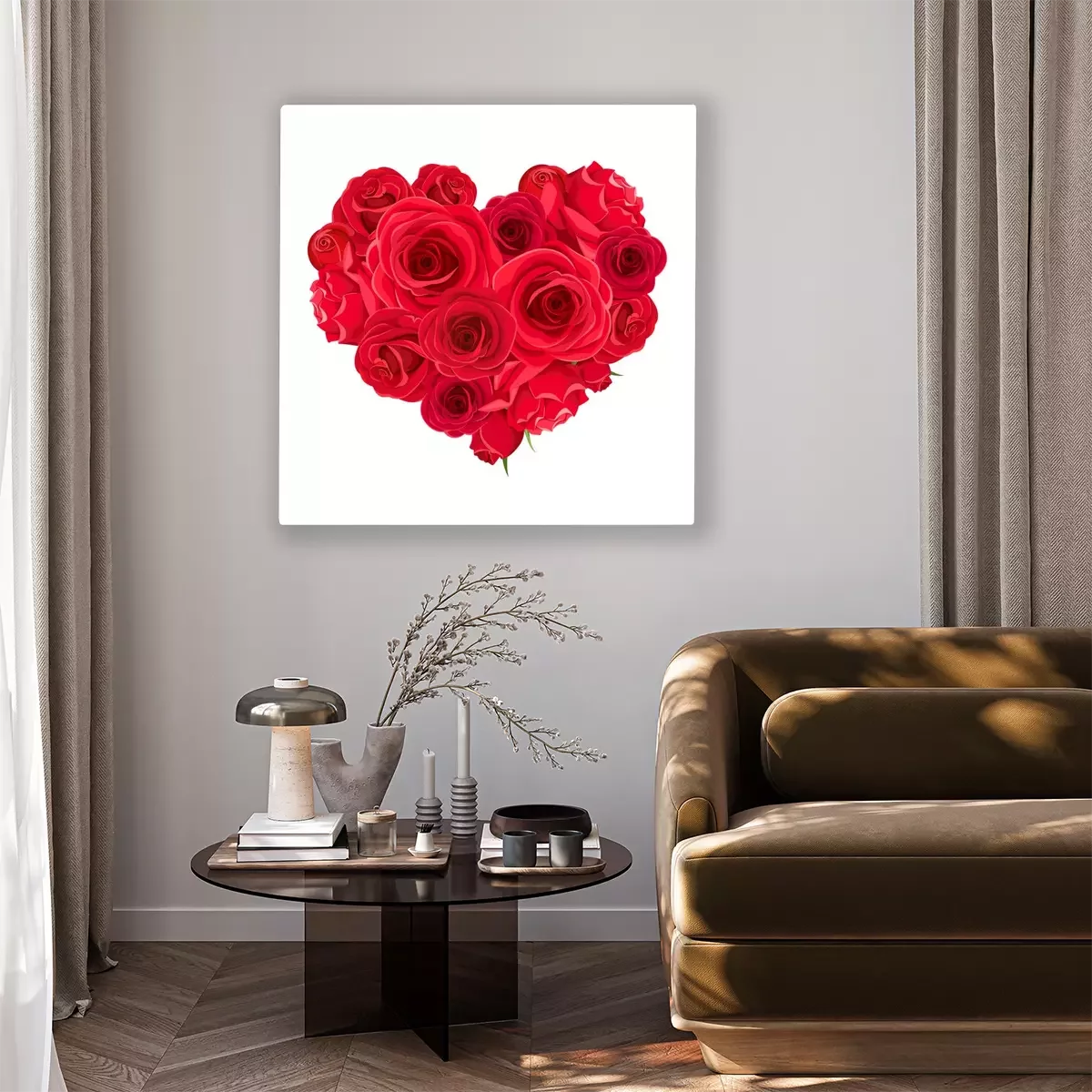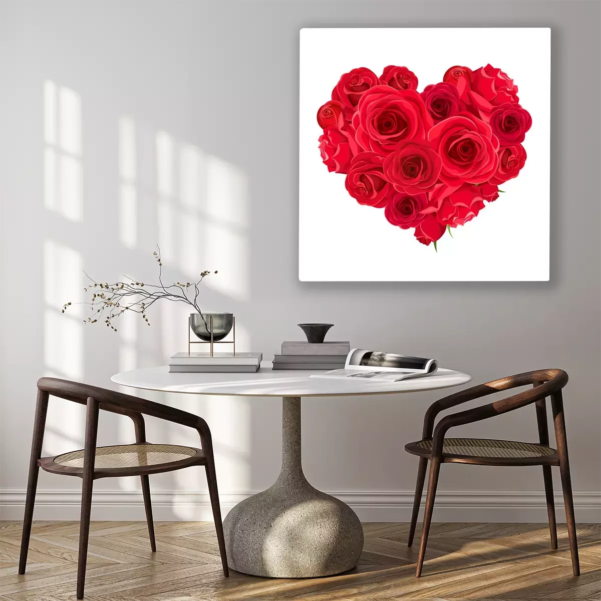 Tableau  Vector Valentine’s day heart of red roses isolated on a white background.
