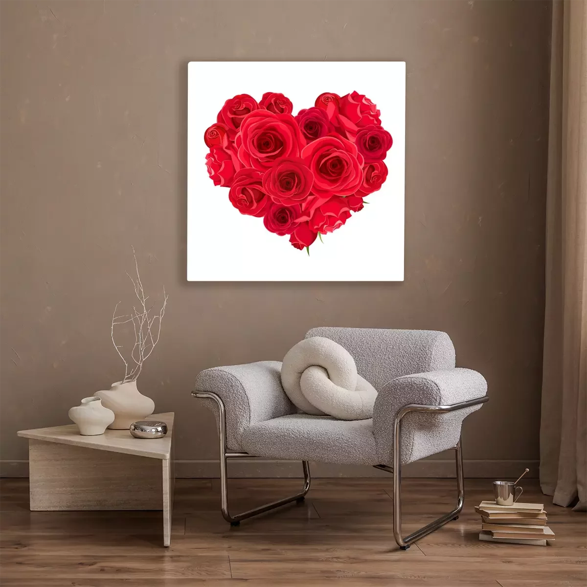 Tableau : Vector Valentine’s day heart of red roses isolated on a white background.