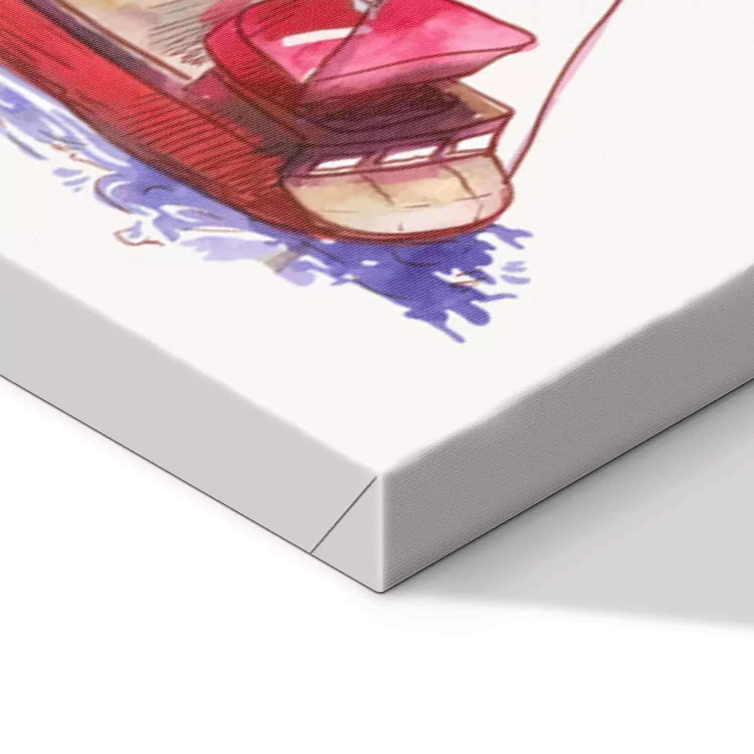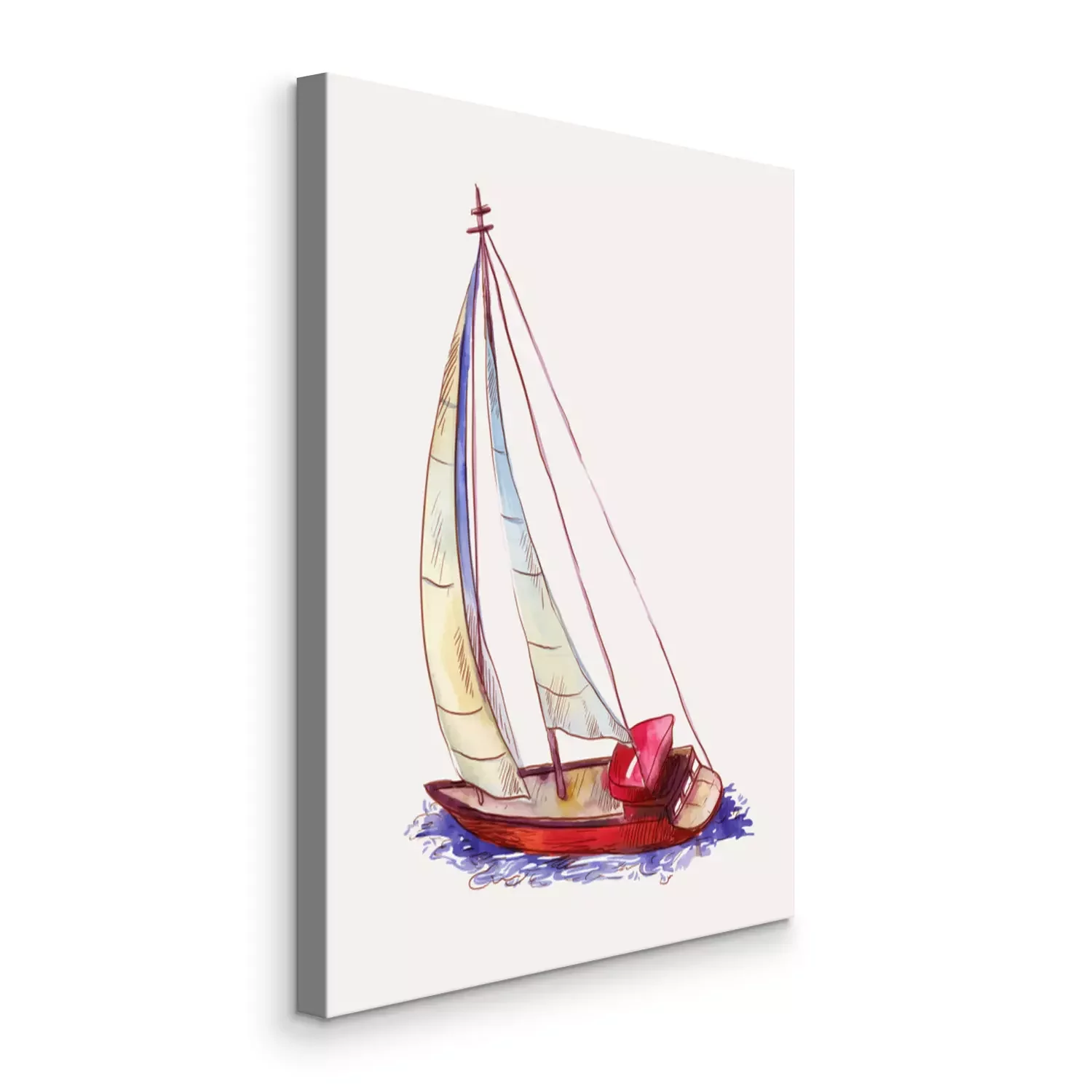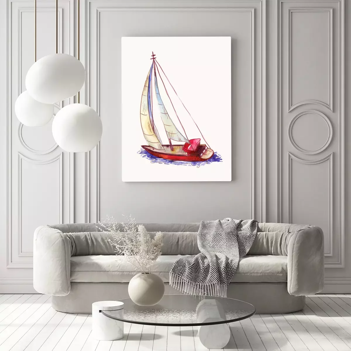 Tableau  Vector watercolor red sailboat isolated on white. Seascape scene in sketch style