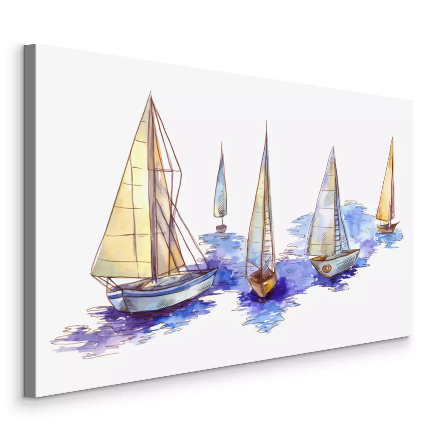 Tableau  Vector watercolor sailboat regatta  isolated on white. Seascape scene in sketch style