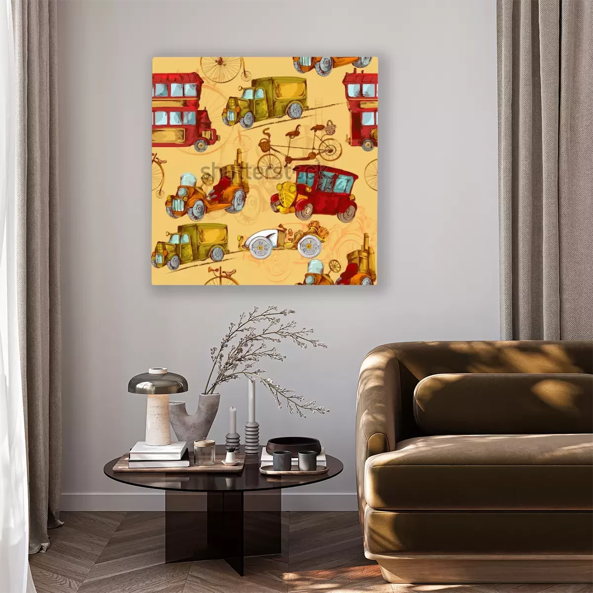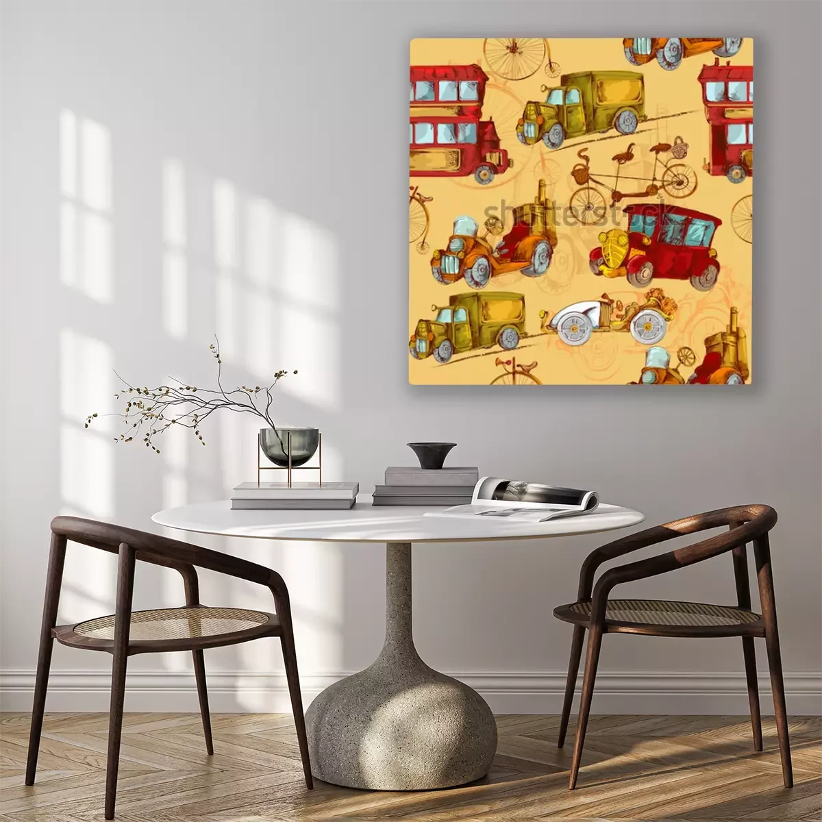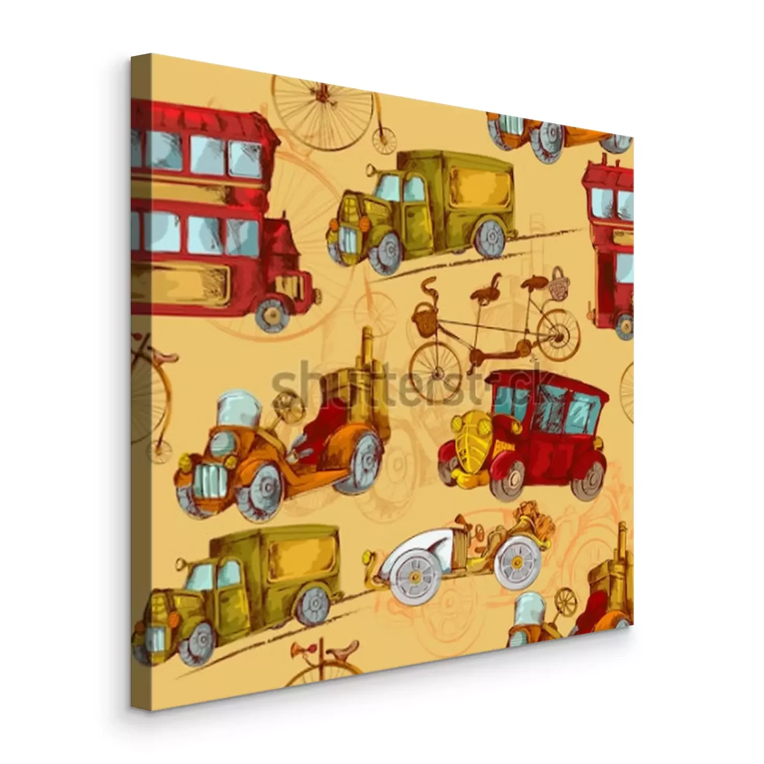Tableau  Vélos de voitures vintage transport steampunk transportent illustration vectorielle transparente motif coloré