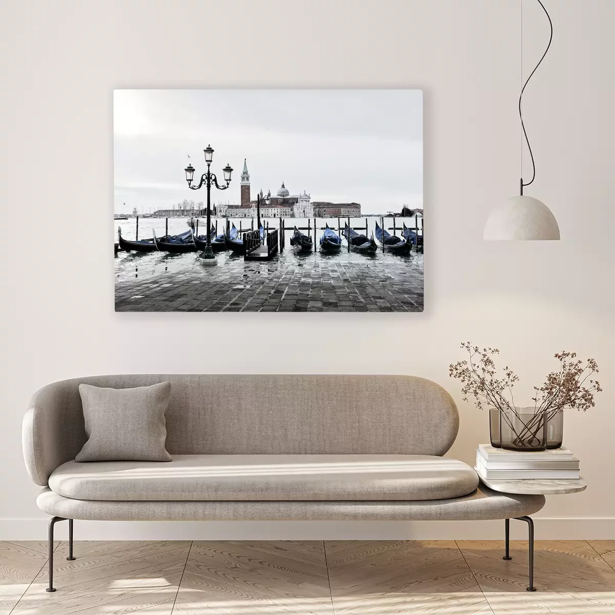 Tableau  Venise et gondoles amarrées