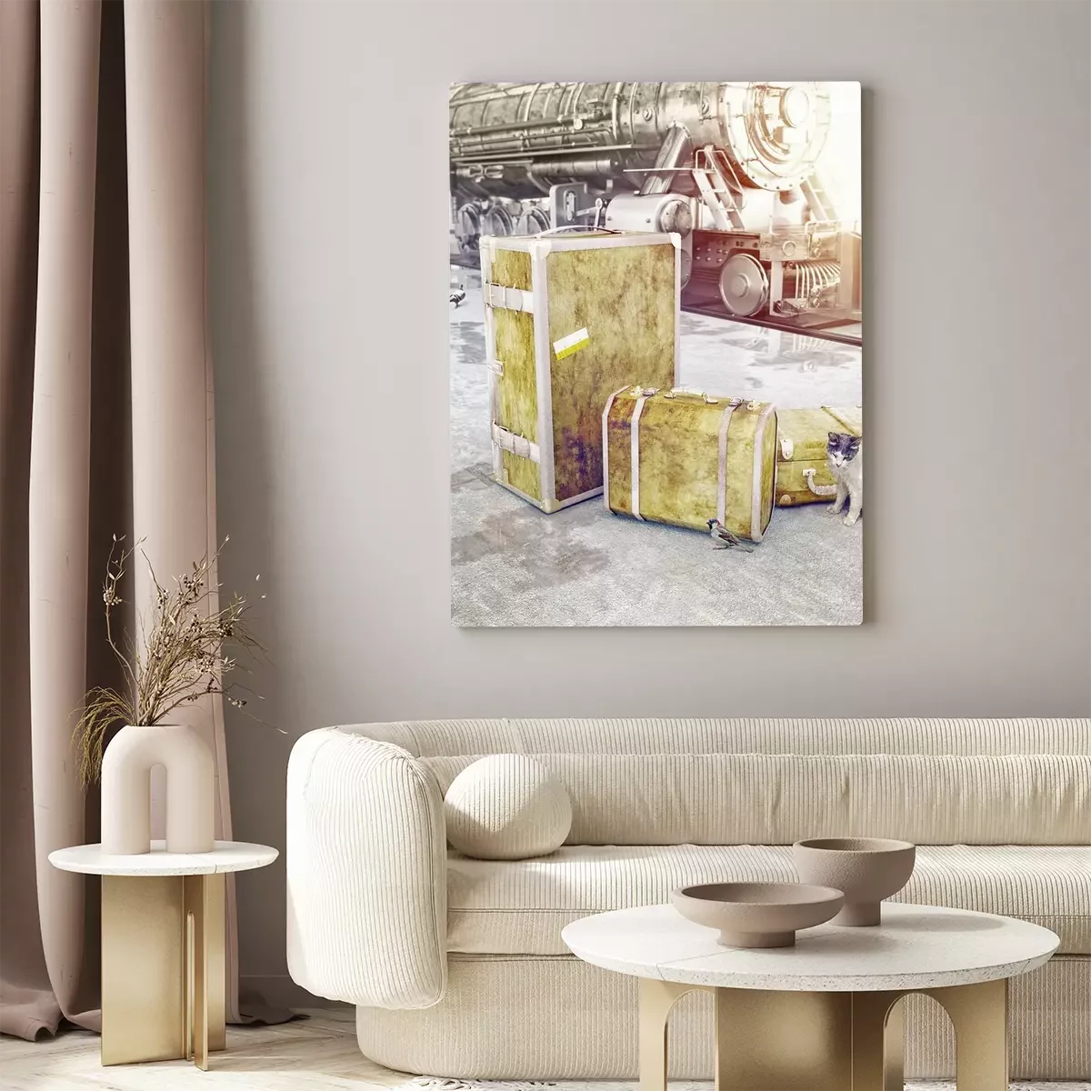Tableau : vieille bagages millésime
