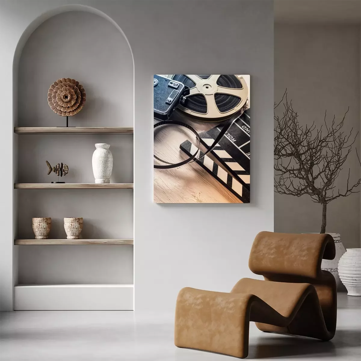 Kino aufspritzen et Rolle auf schwarzem Stein