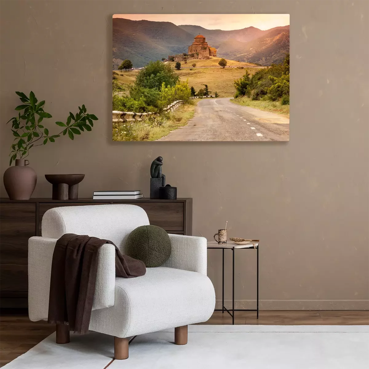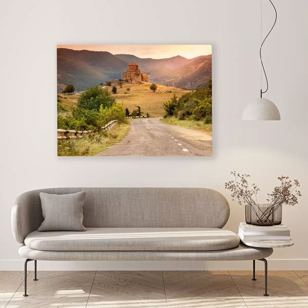 Tableau  Vieille église orthodoxe en Géorgie au coucher du soleil