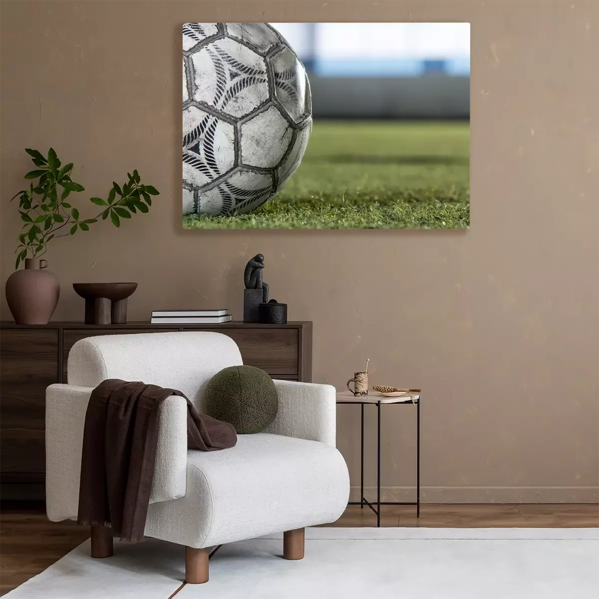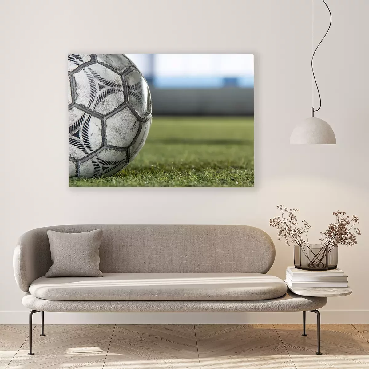Tableau : Vieux ballon sur un terrain de football