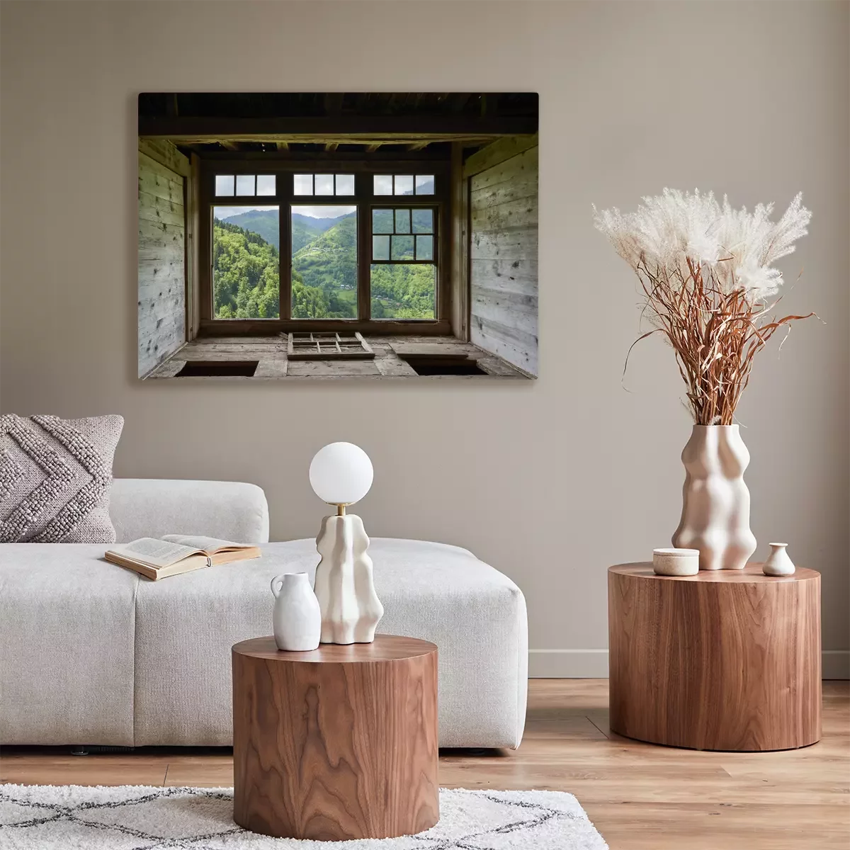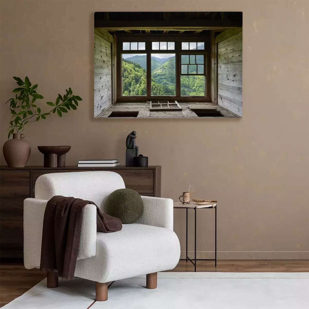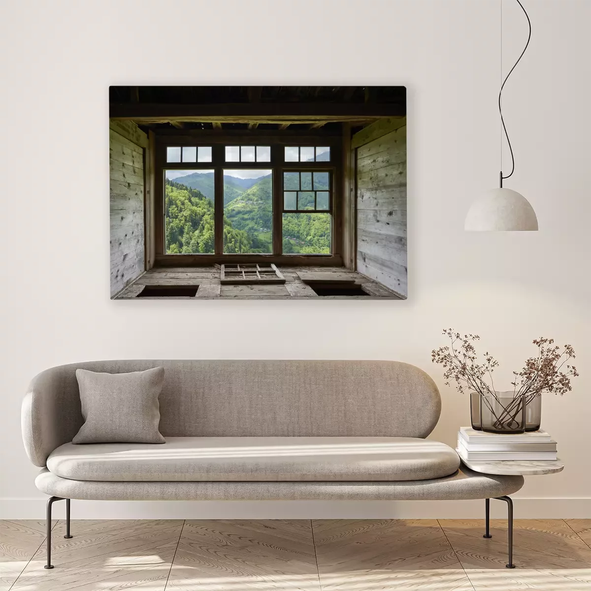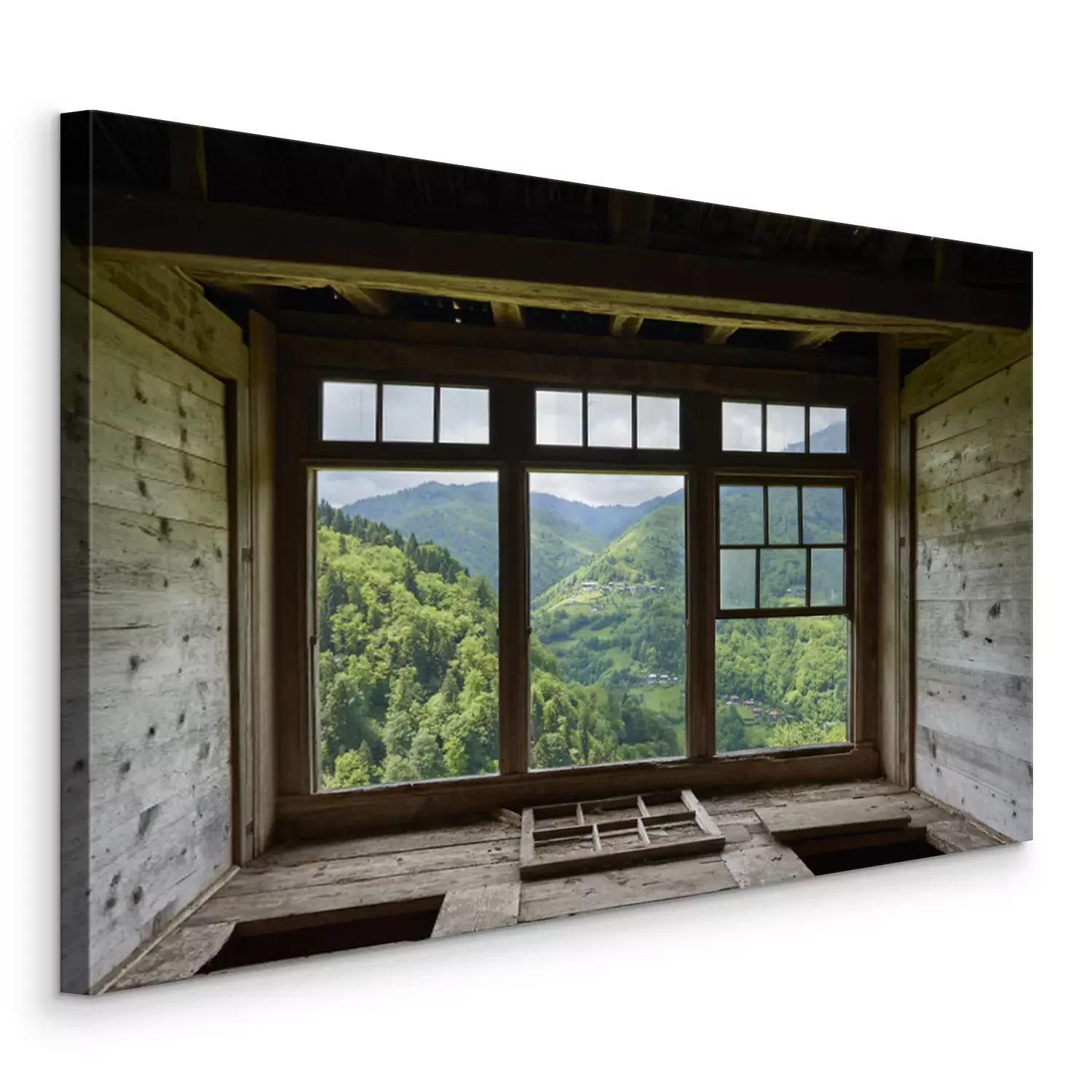 Tableau  View from a window in a wooden house