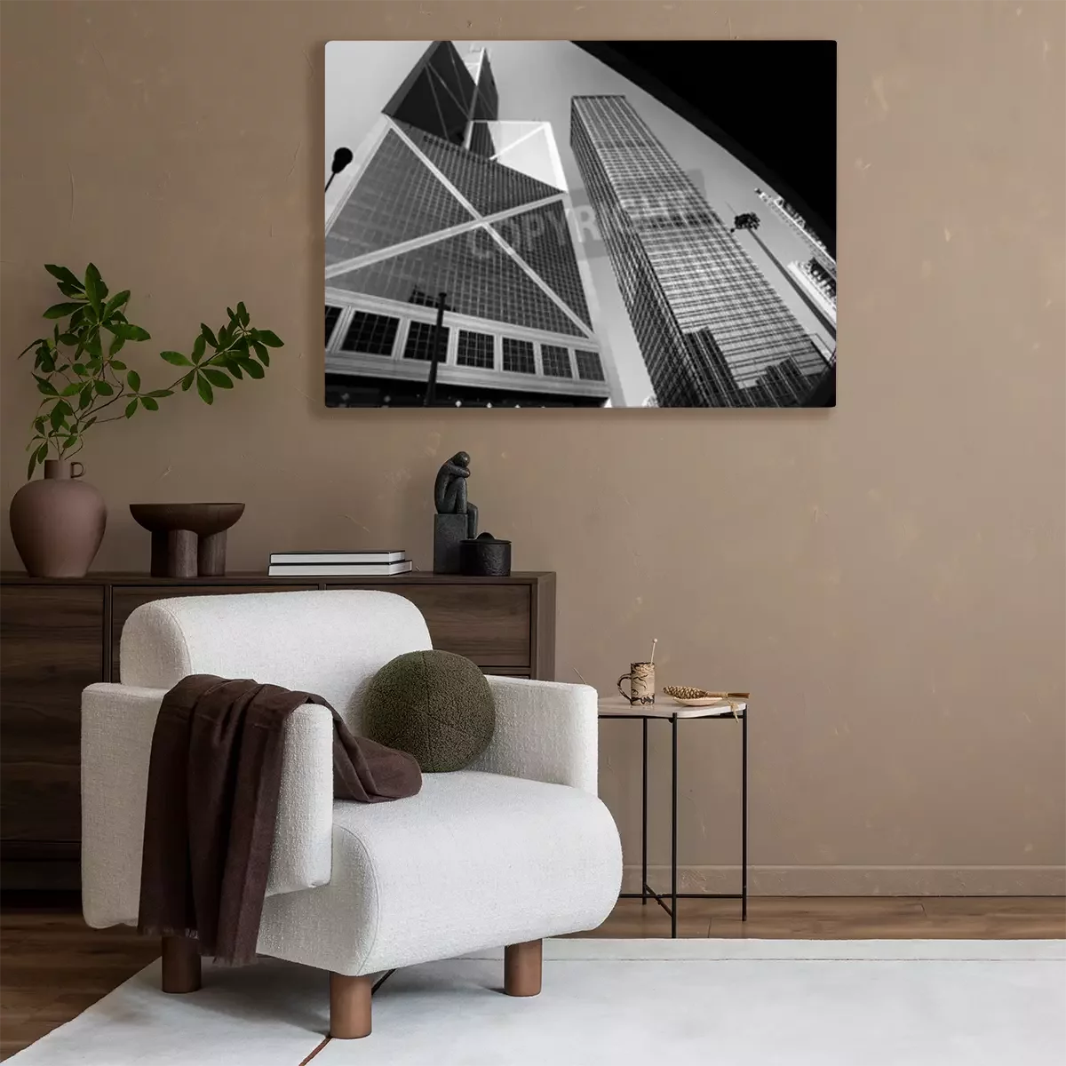 Tableau  Ville, moderne, architecture, perspective, élevé, bâtiments, ciel, noir, blanc