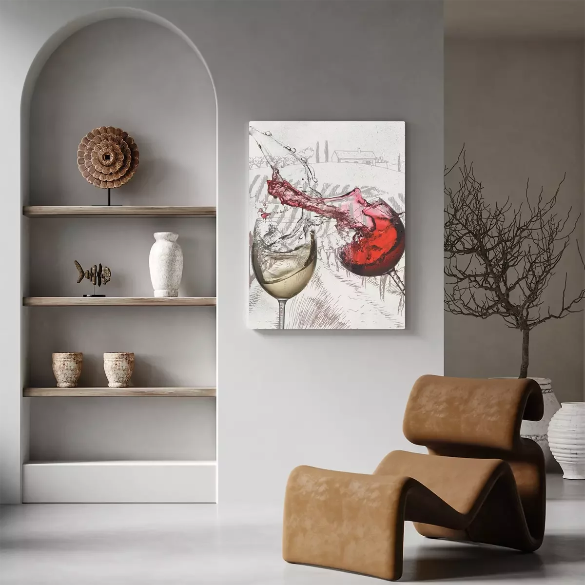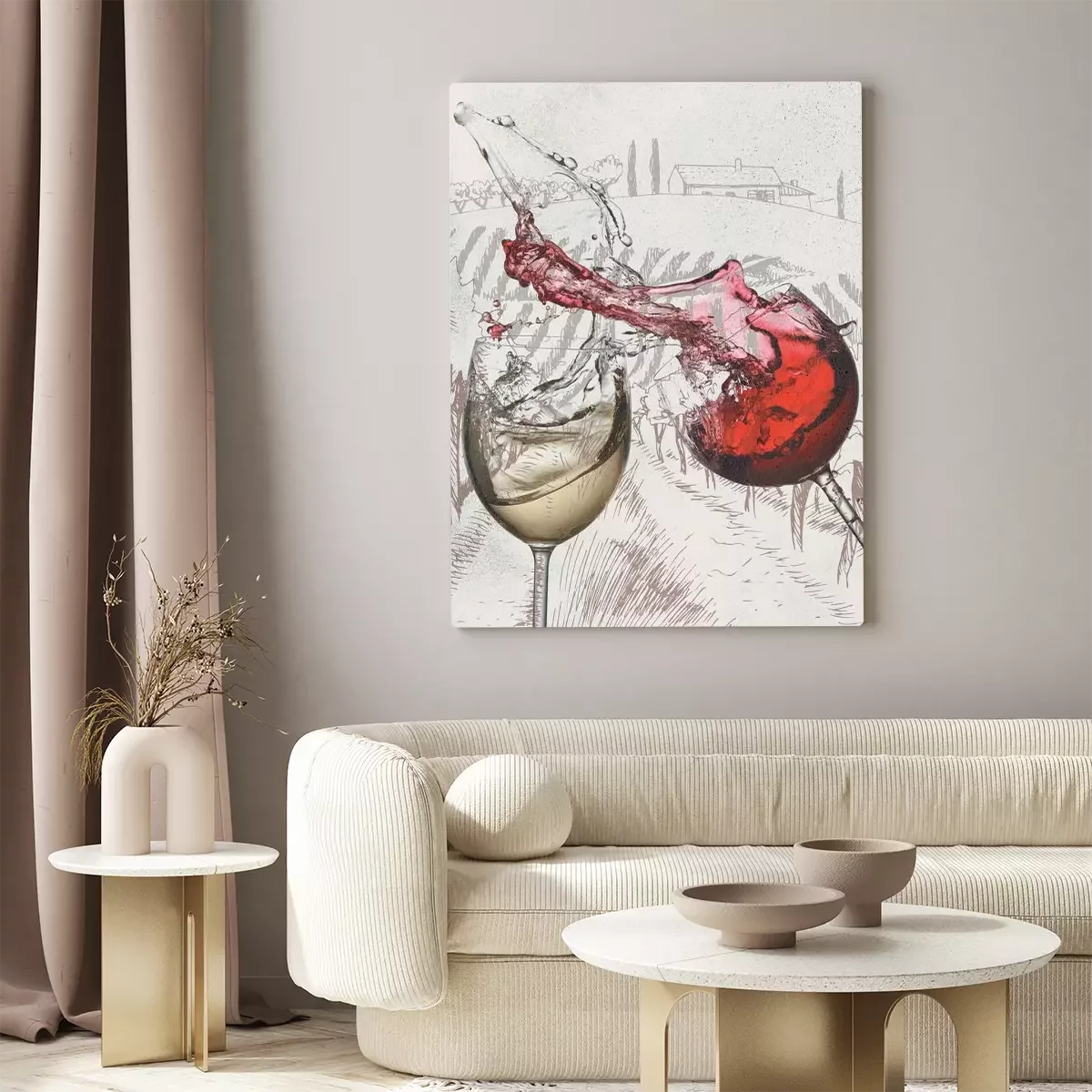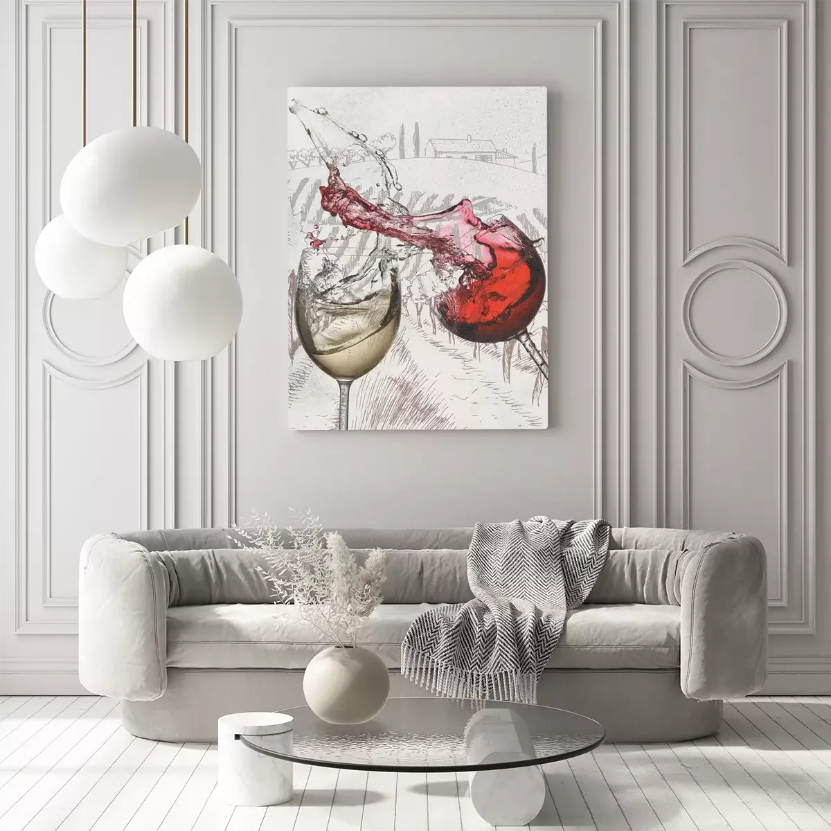 Vin blanc et rouge dans des verres donnant sur la campagne