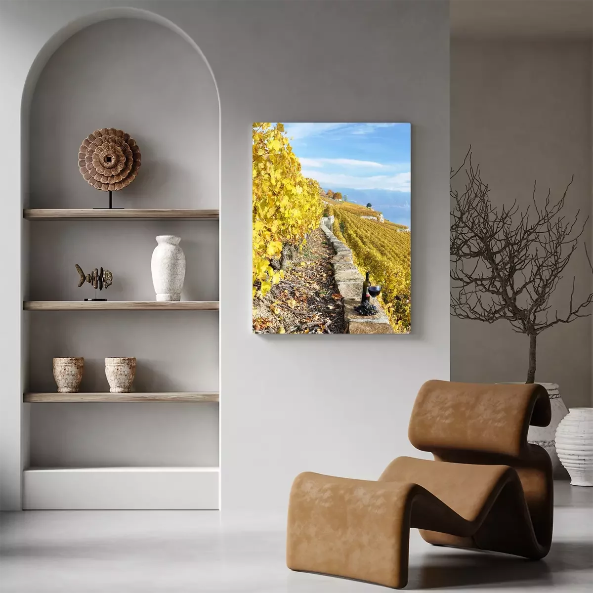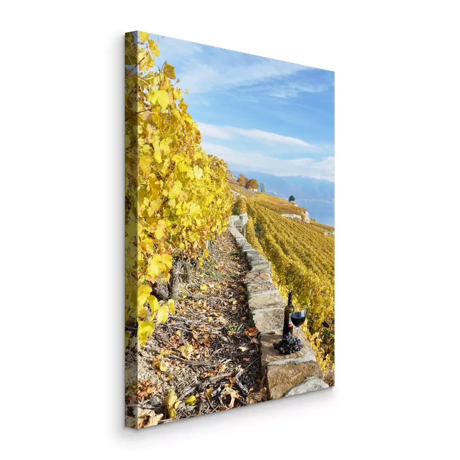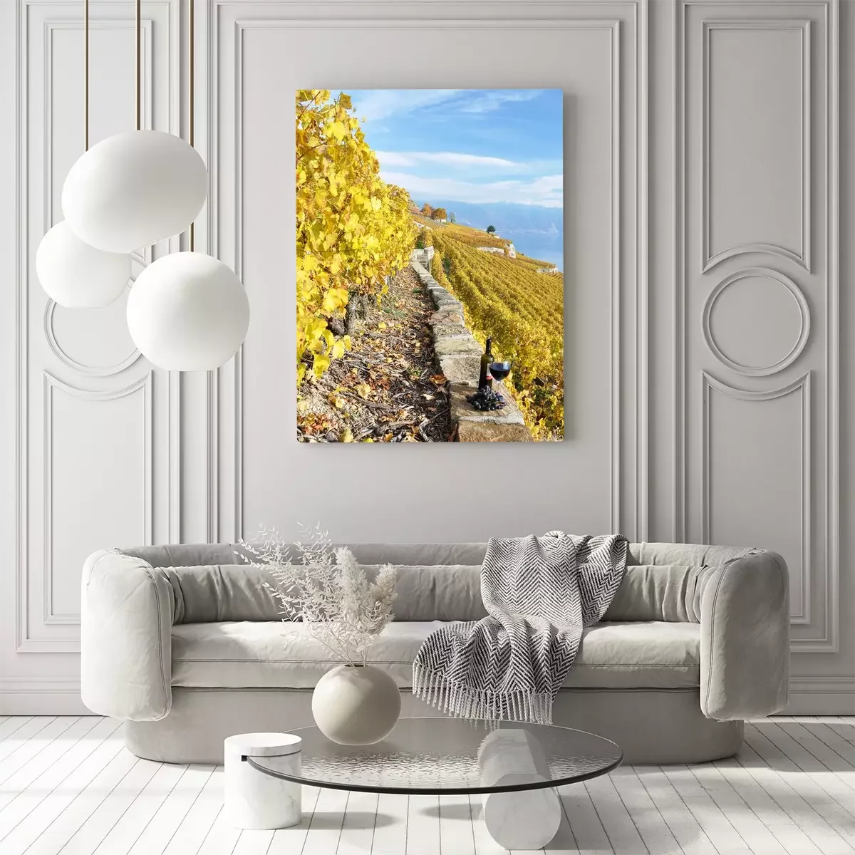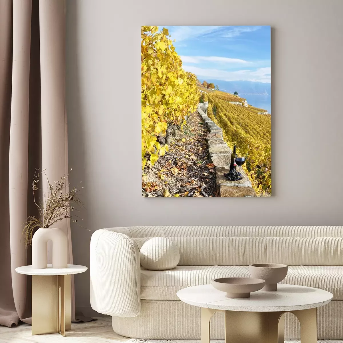 Tableau  Vin rouge et raisins sur la terrasse du vignoble de Lavaux région,