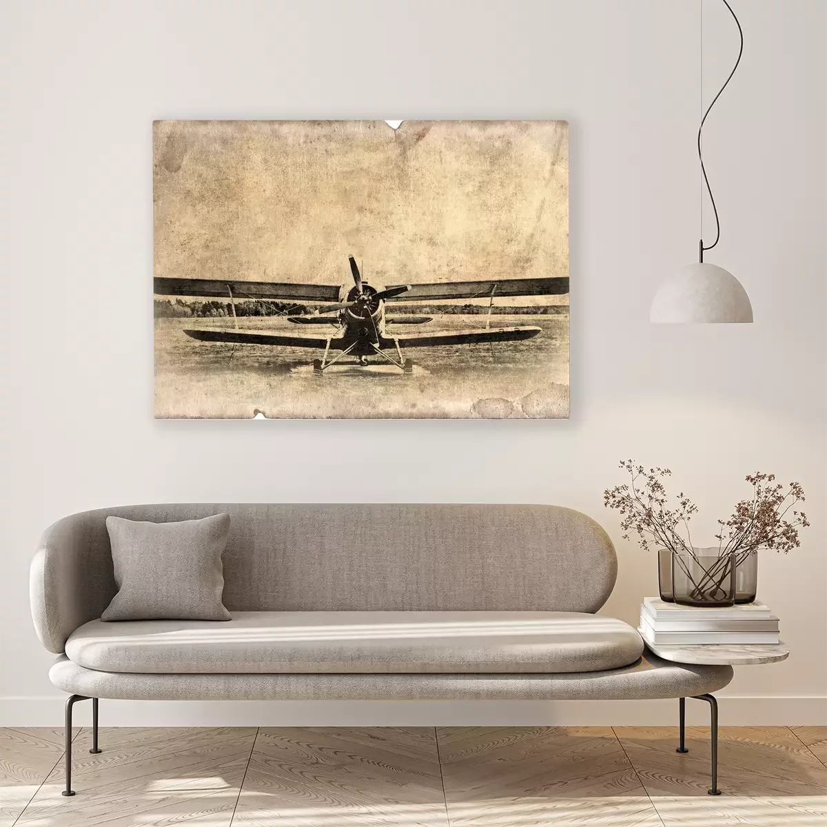 Tableau  Vintage carte postale militaire isolé, vieux biplan