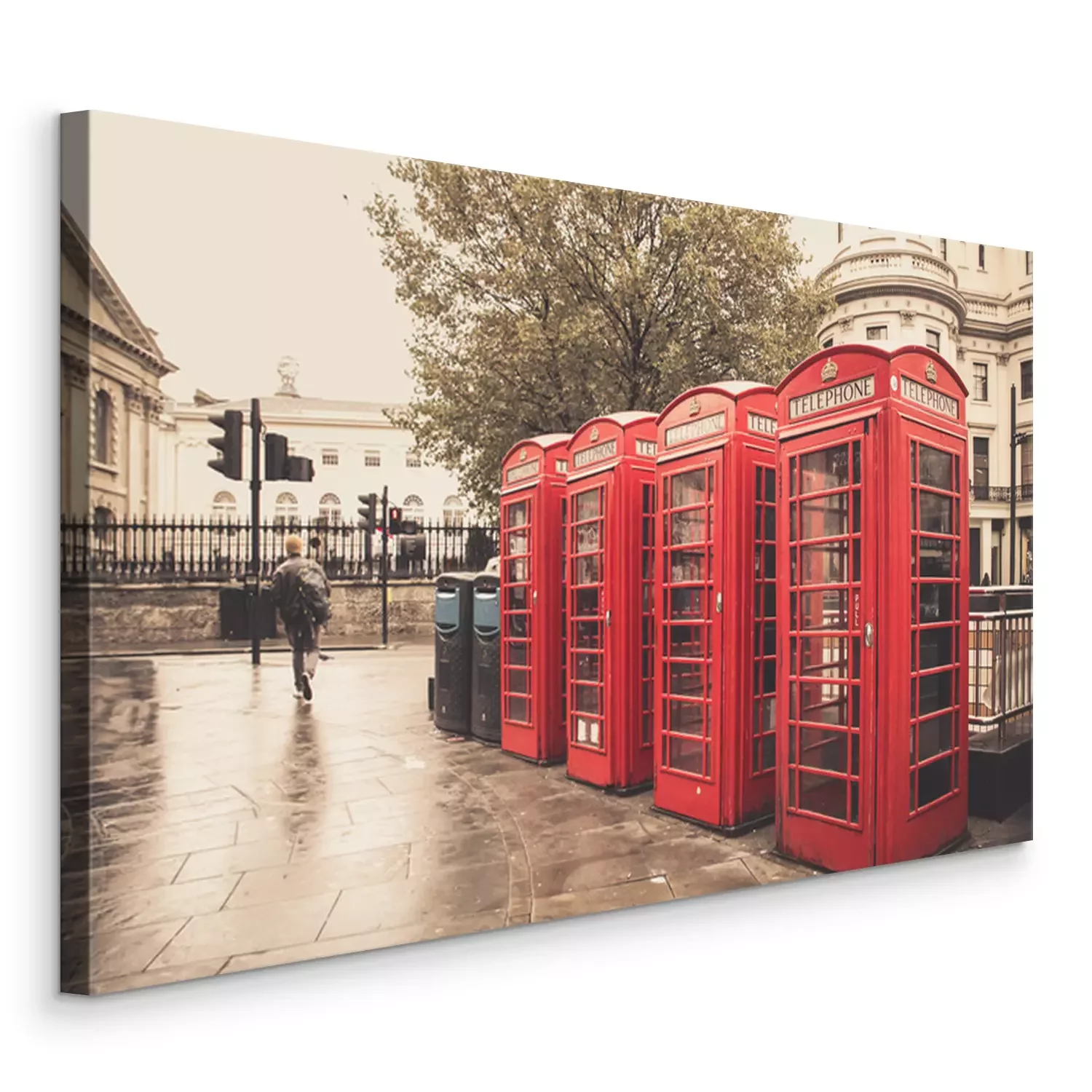 Tableau : Vintage style cabines téléphoniques rouges sur la rue des pluies à Londres