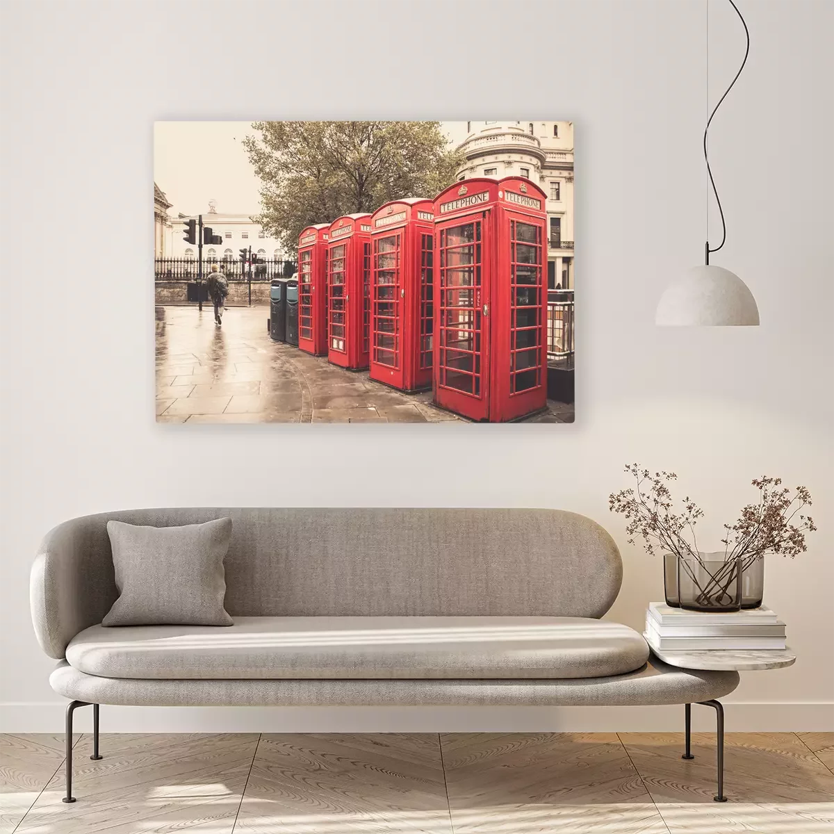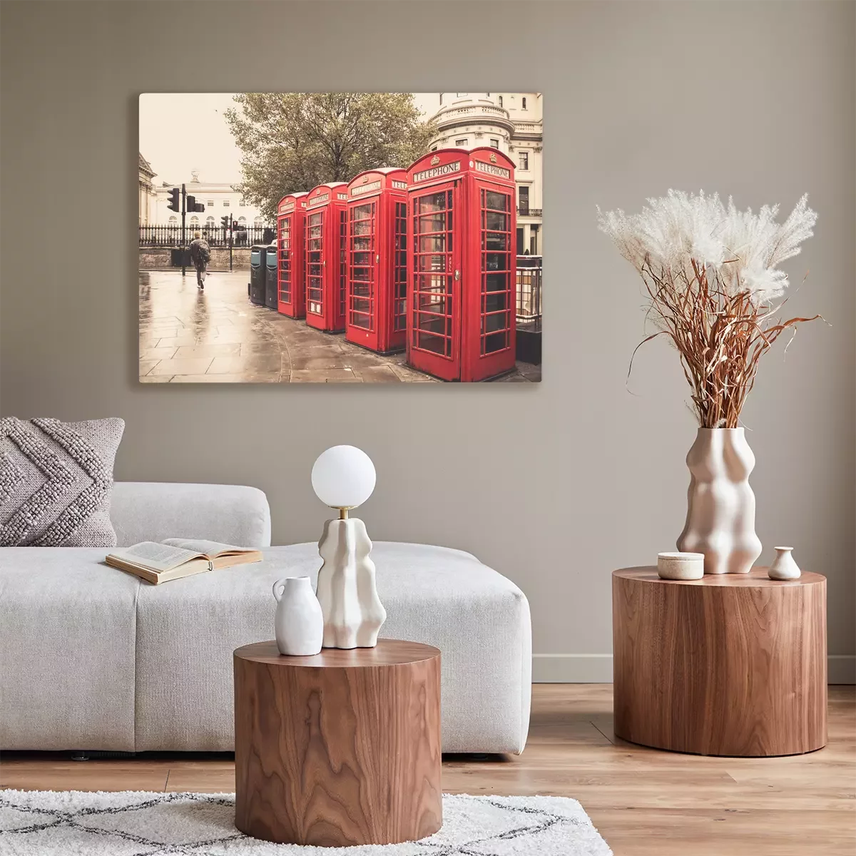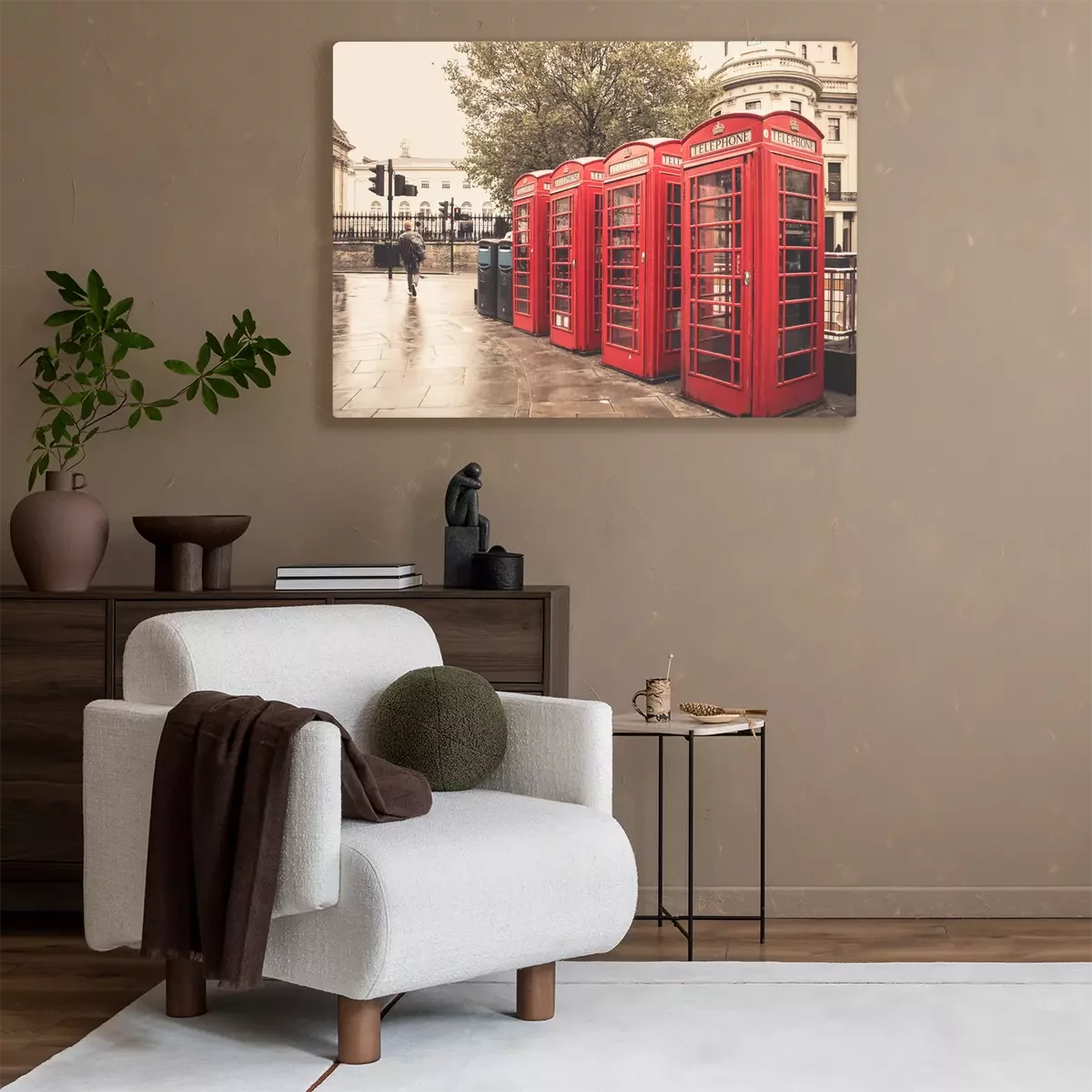 Tableau  Vintage style cabines téléphoniques rouges sur la rue des pluies à Londres