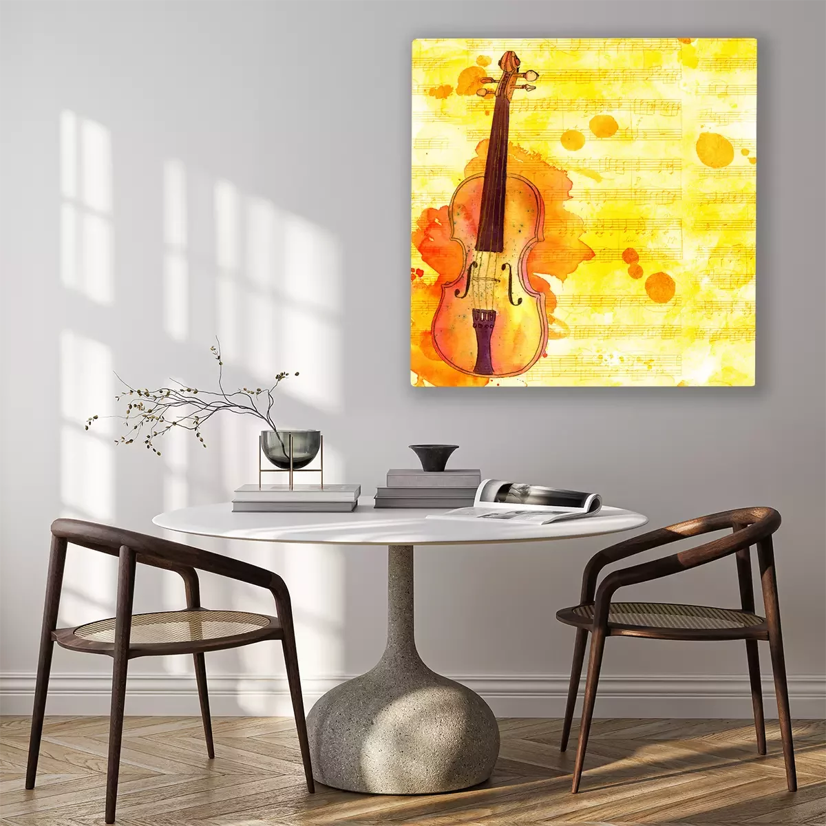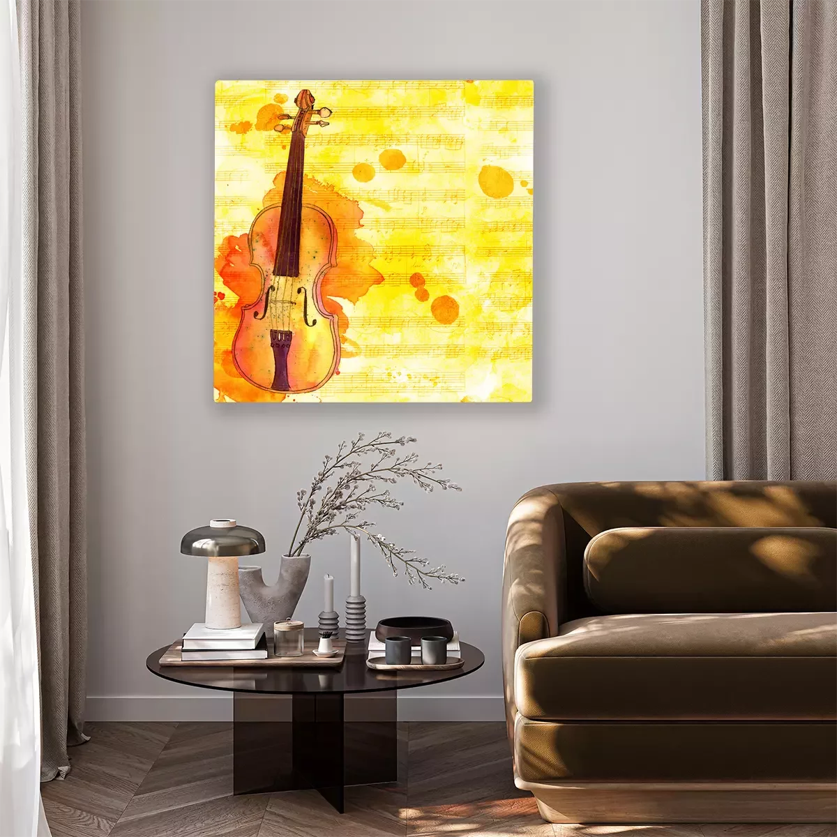 Tableau  Violon sur des partitions fanées, modèle de conception dorée