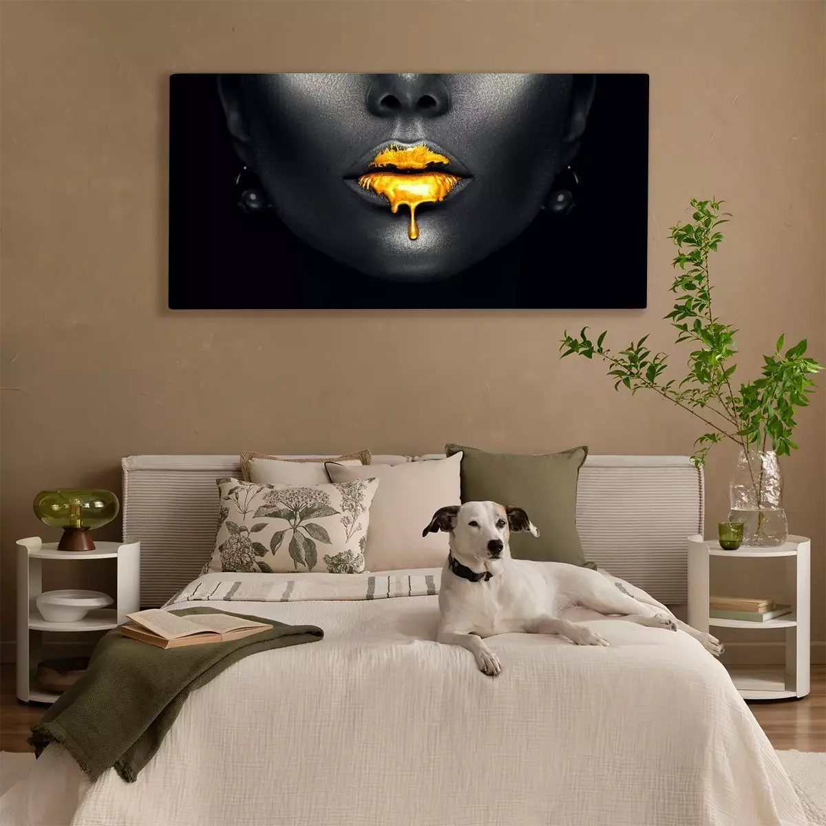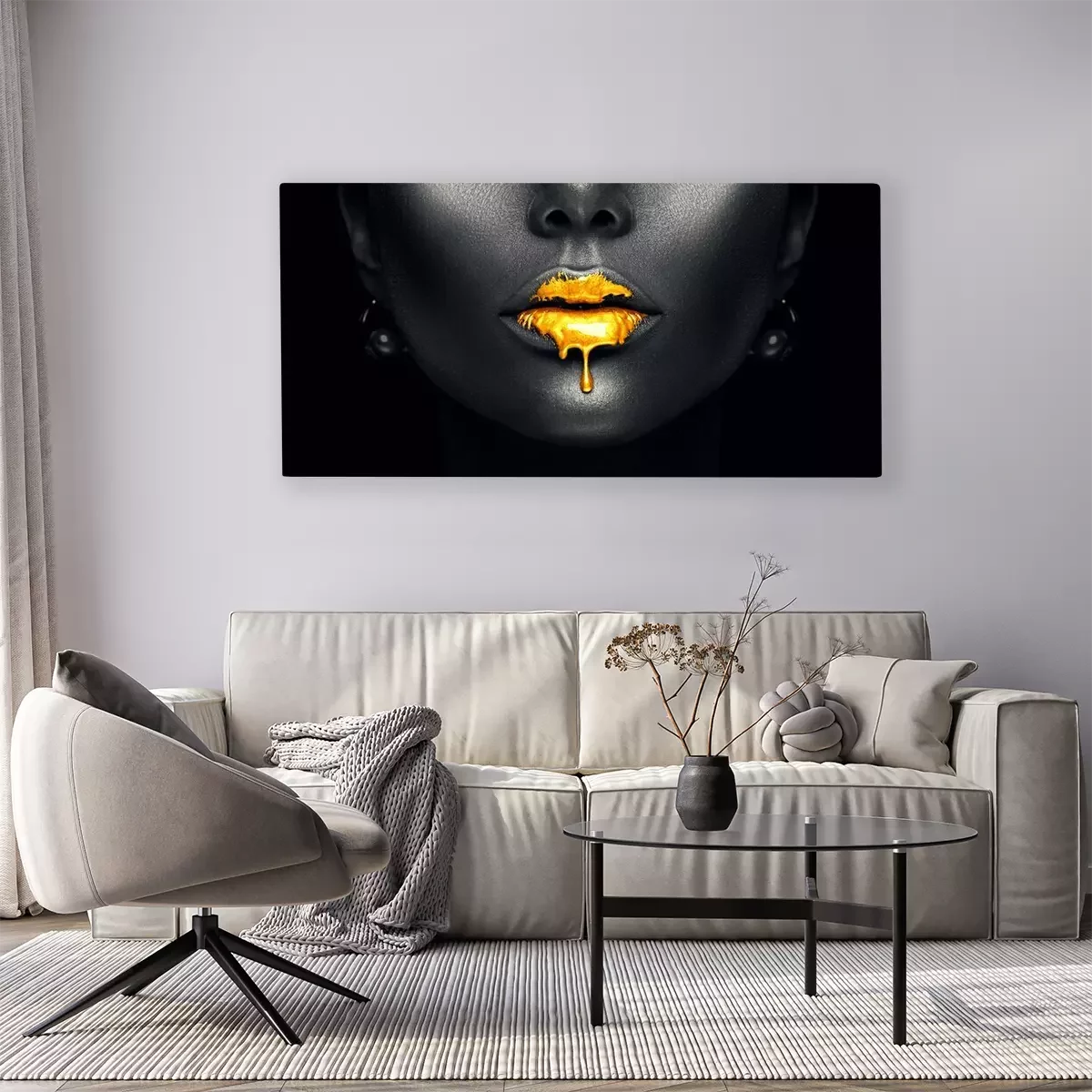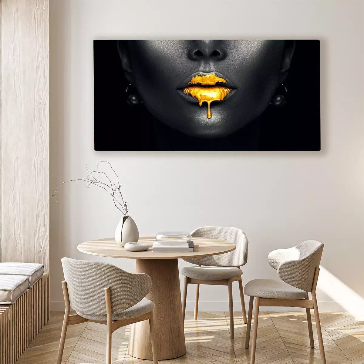 Tableau : Visage de femme avec des lèvres dorées