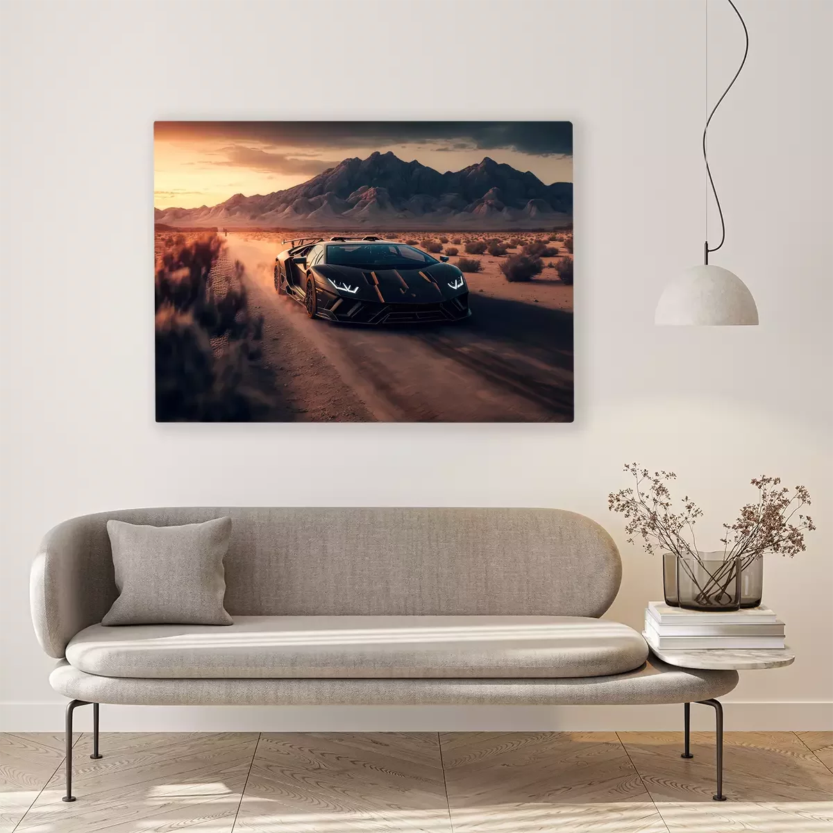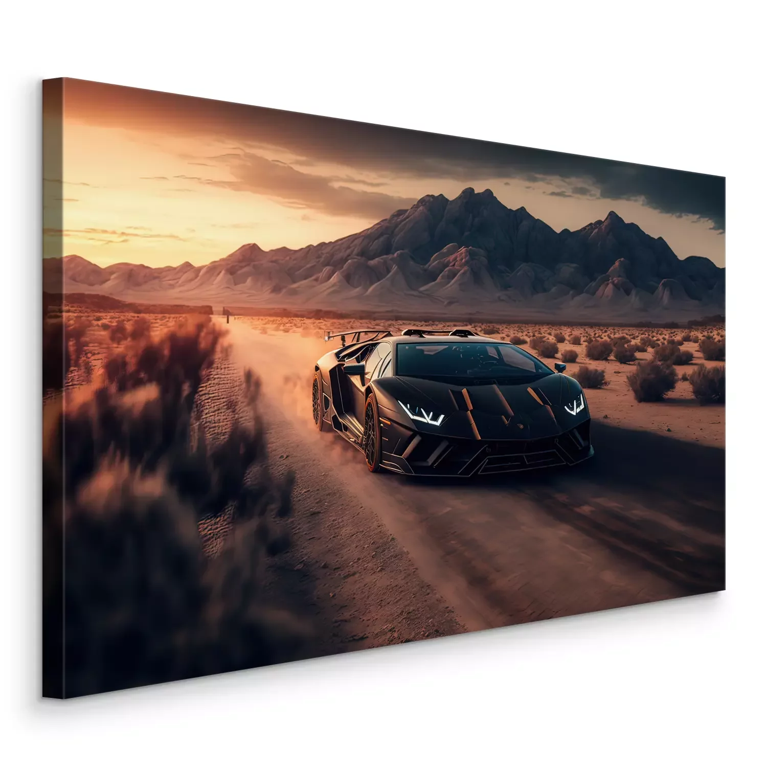 Tableau : Voiture de sport noire dans le désert