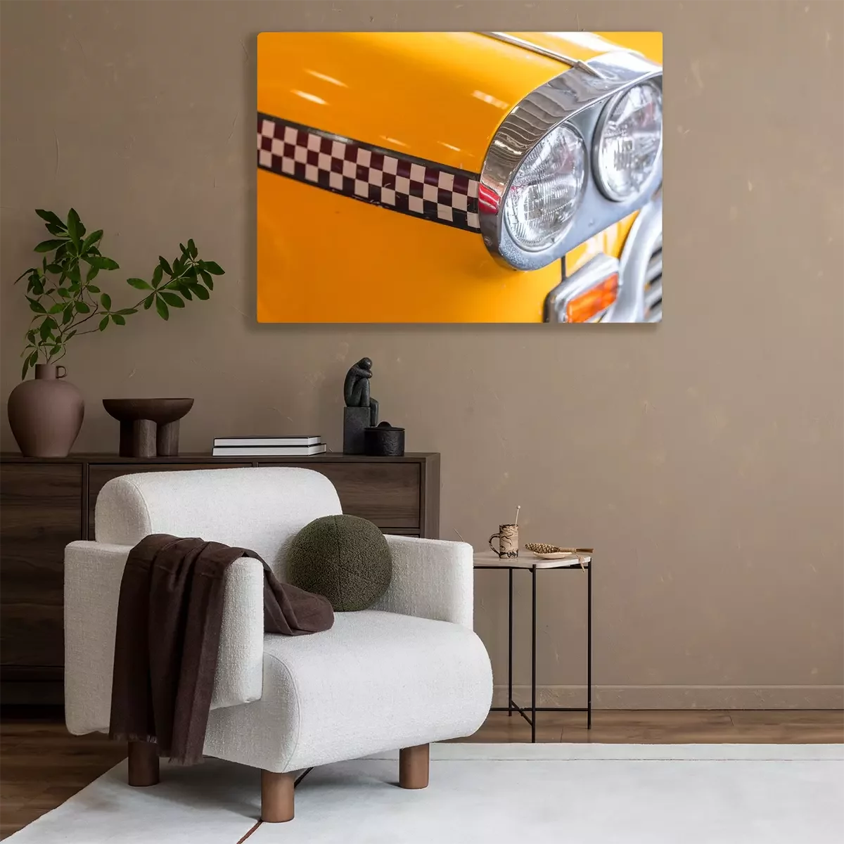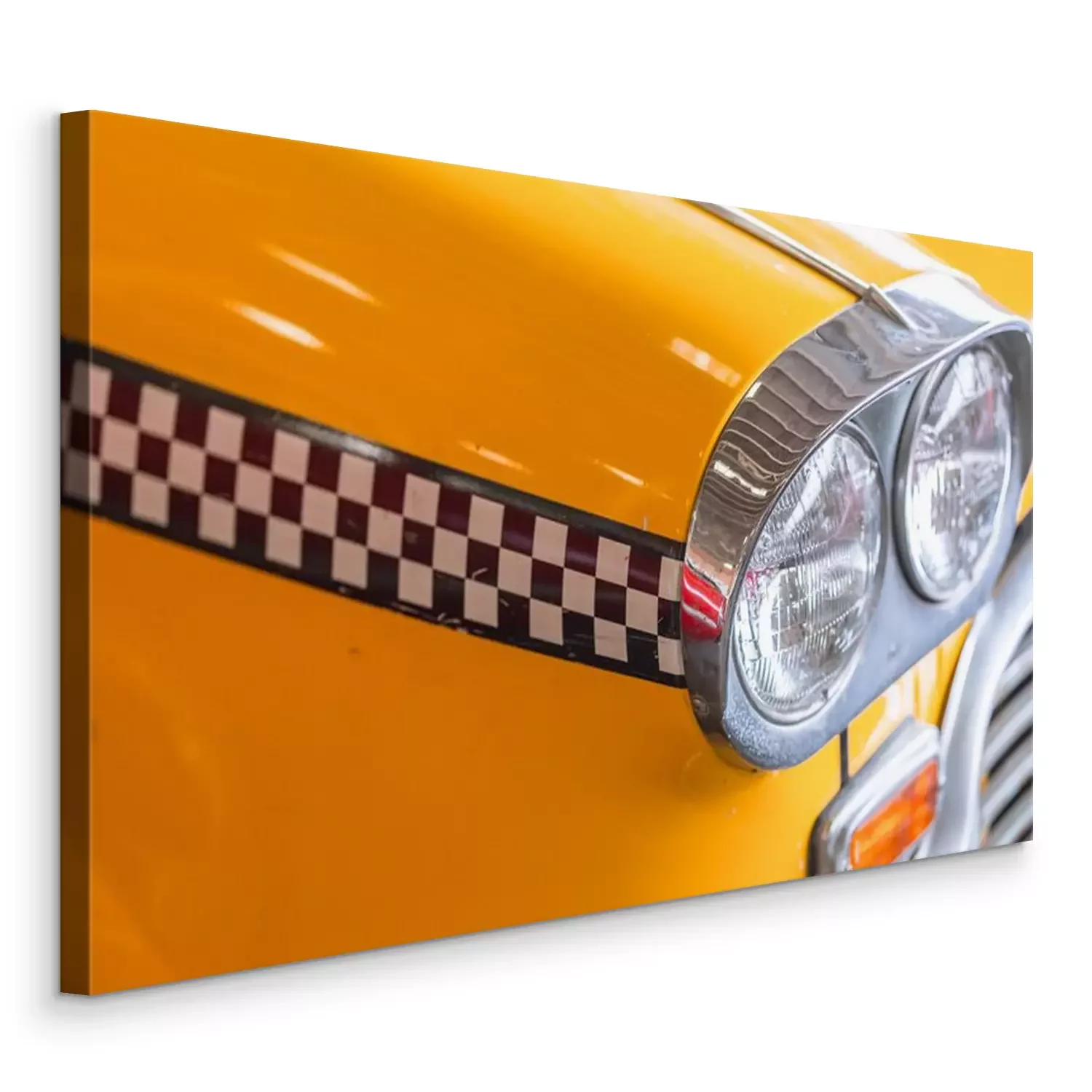 Tableau  voiture de taxi jaune bouchent la lumière de la tête pour le concept de fond pilote chauffeur