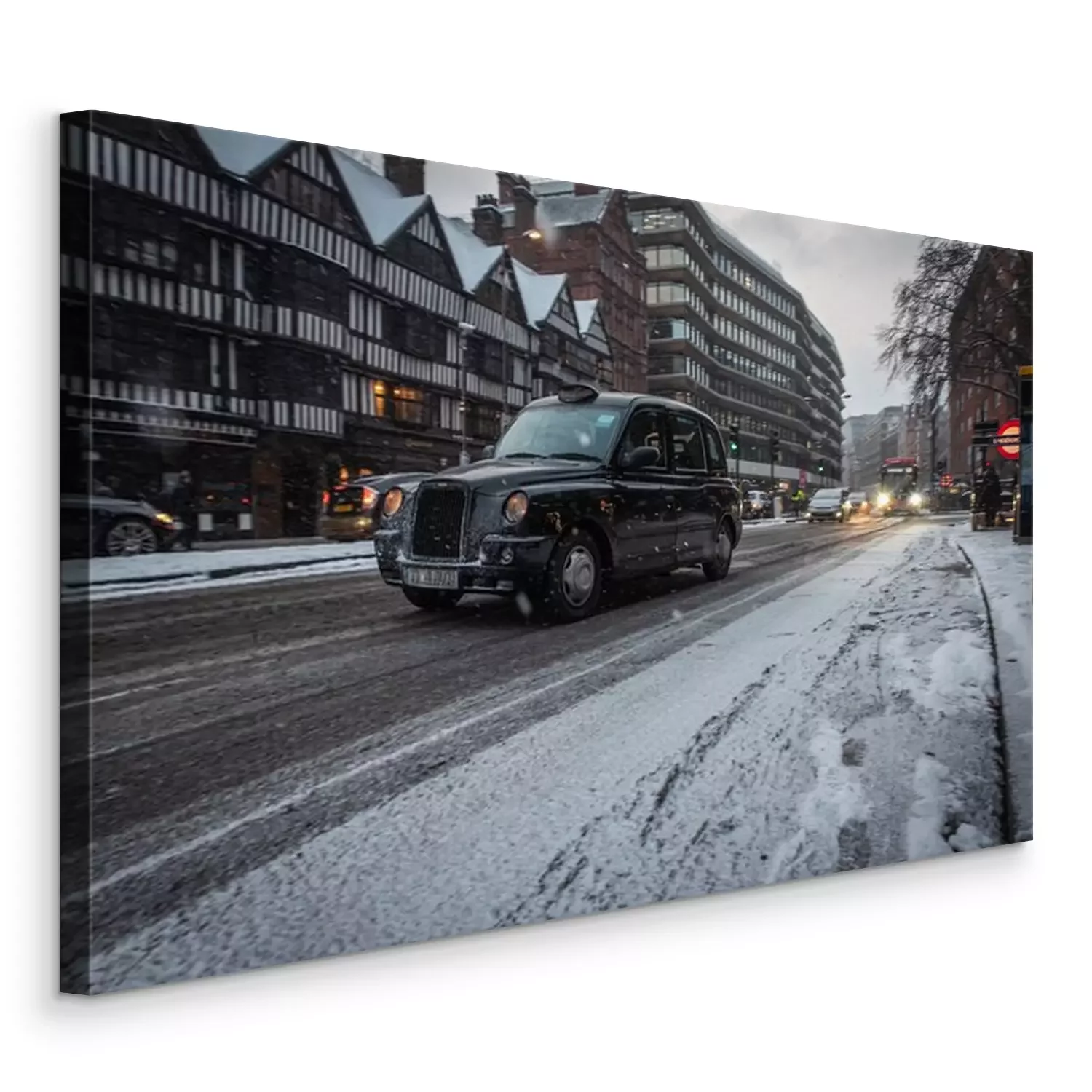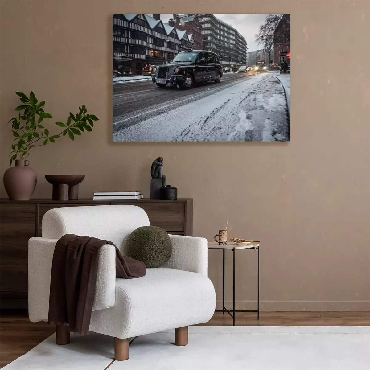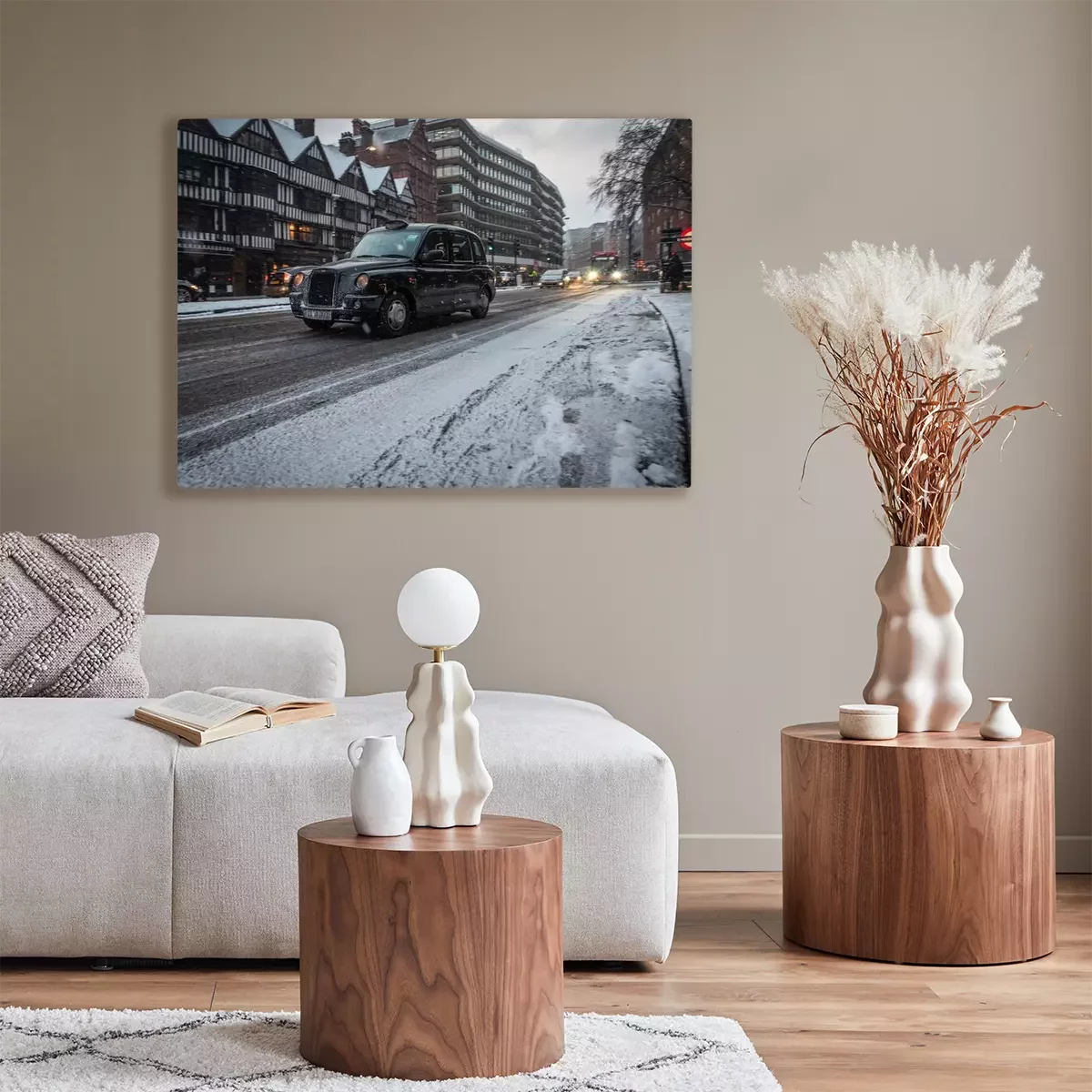 Tableau  Voitures conduisant dans la neige à travers London Street