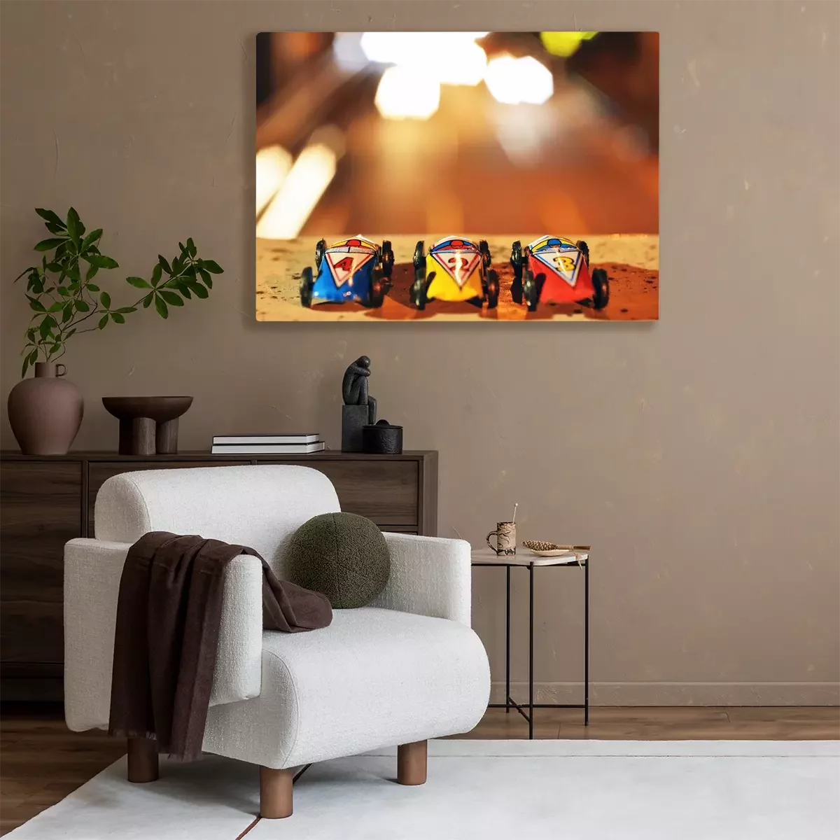 Tableau  Voitures de course antiques, fabriquées avant les années 1960, dans la rue de nuit.