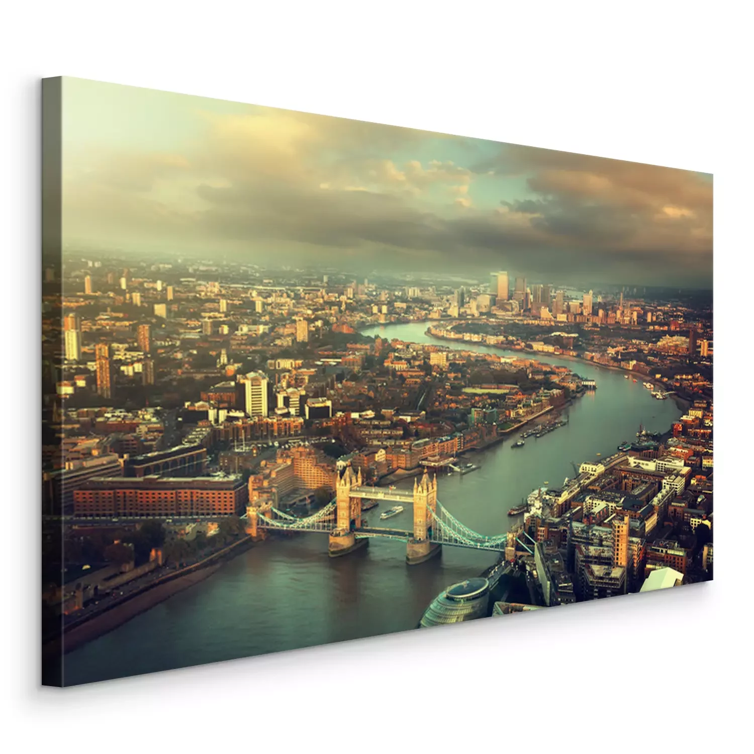 Tableau  Vue aérienne de Londres avec Tower Bridge en temps de coucher du soleil