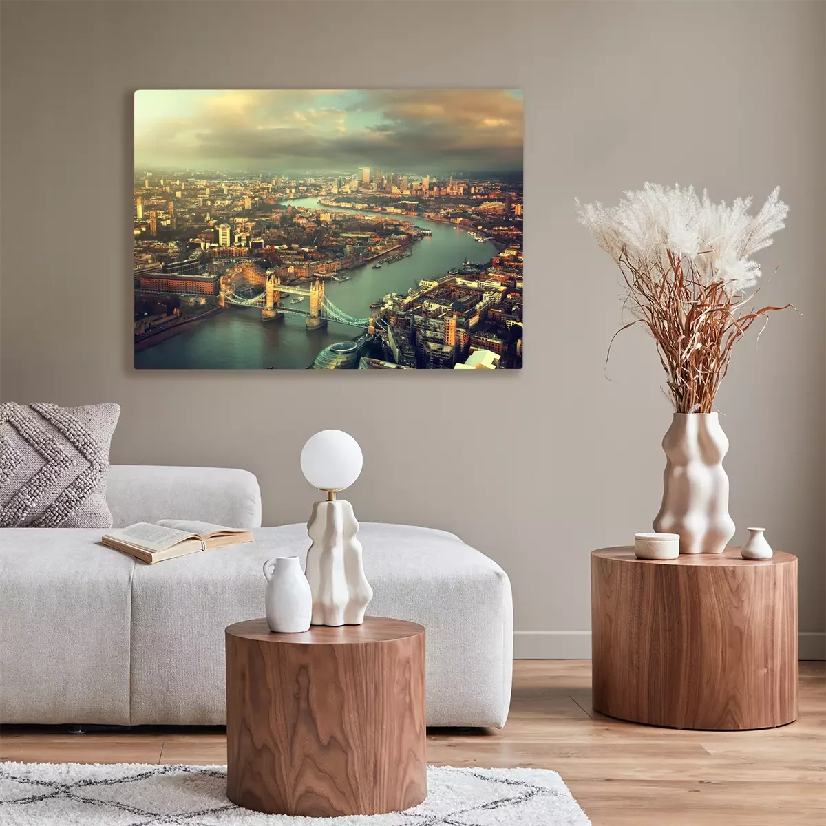 Tableau : Vue aérienne de Londres avec Tower Bridge en temps de coucher du soleil