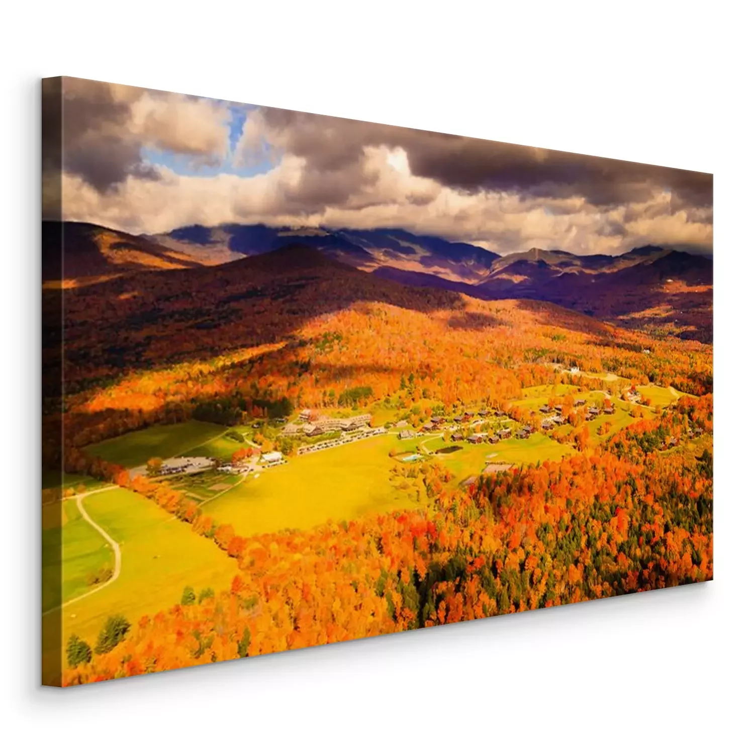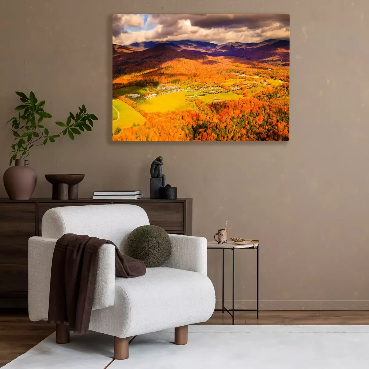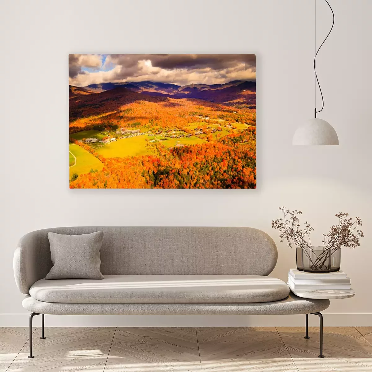 Tableau  Vue aérienne de Trapp Family Lodge pendant la haute saison de feuillage.